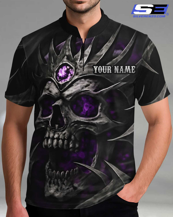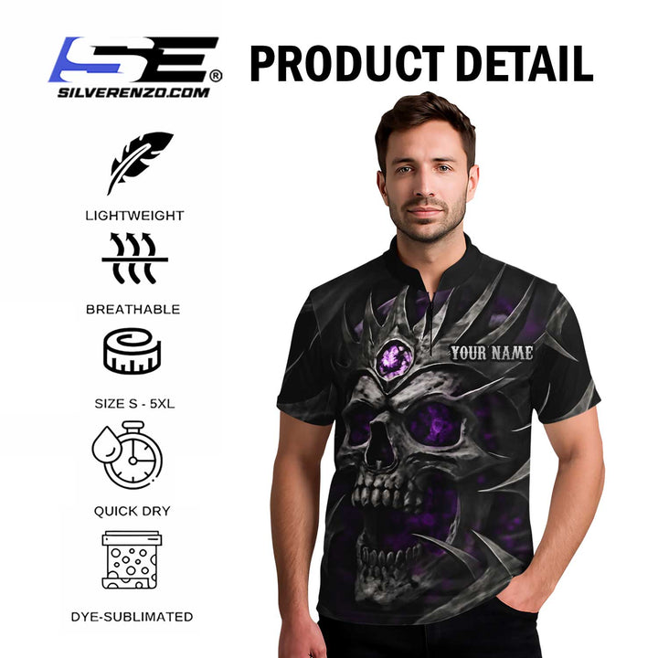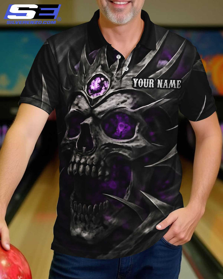Personalized Bowling And Pins Skull Men Women Polo Shirt Custom Name Bowling Team Jersey