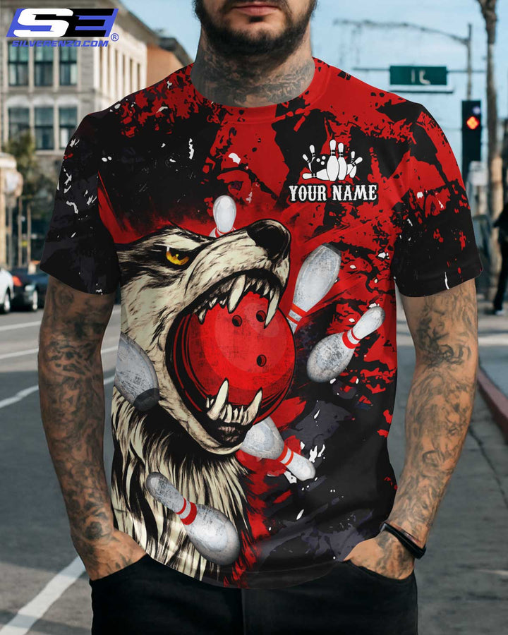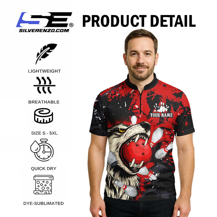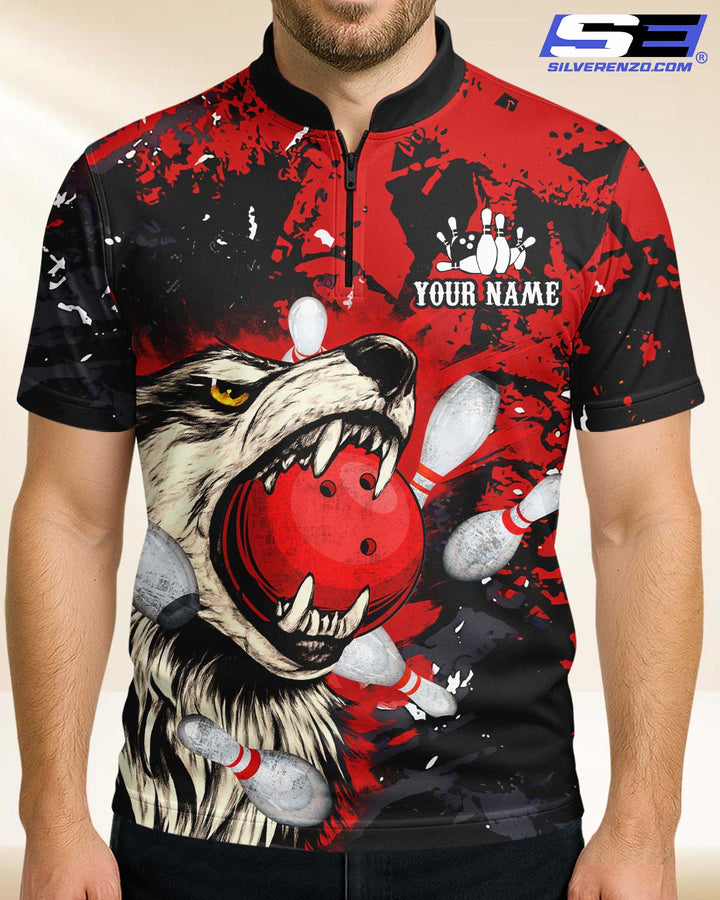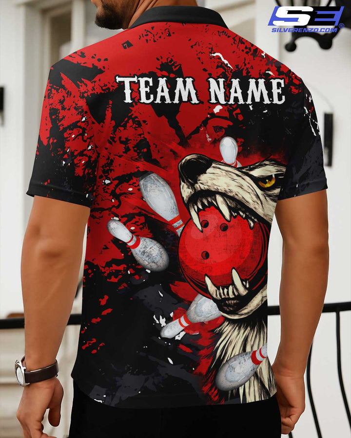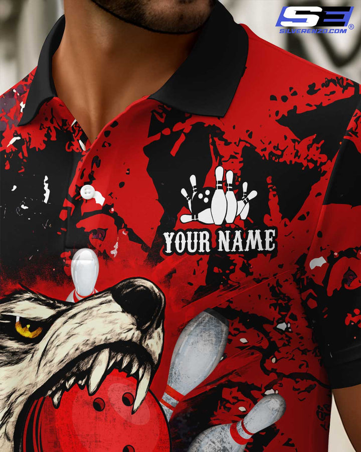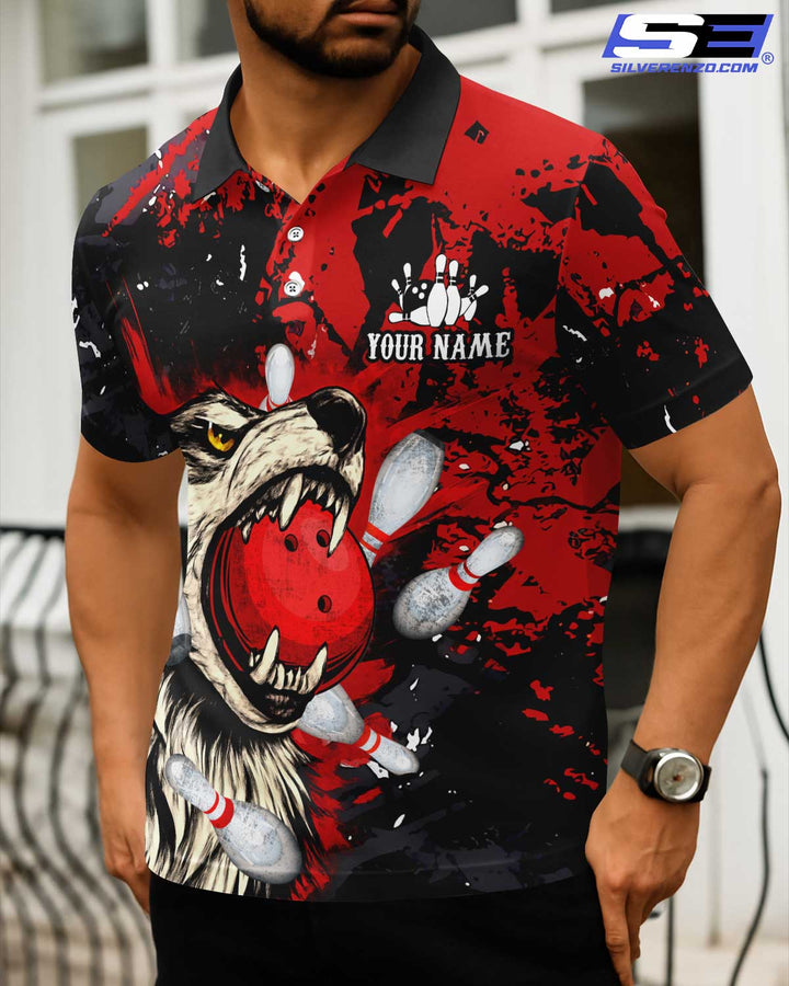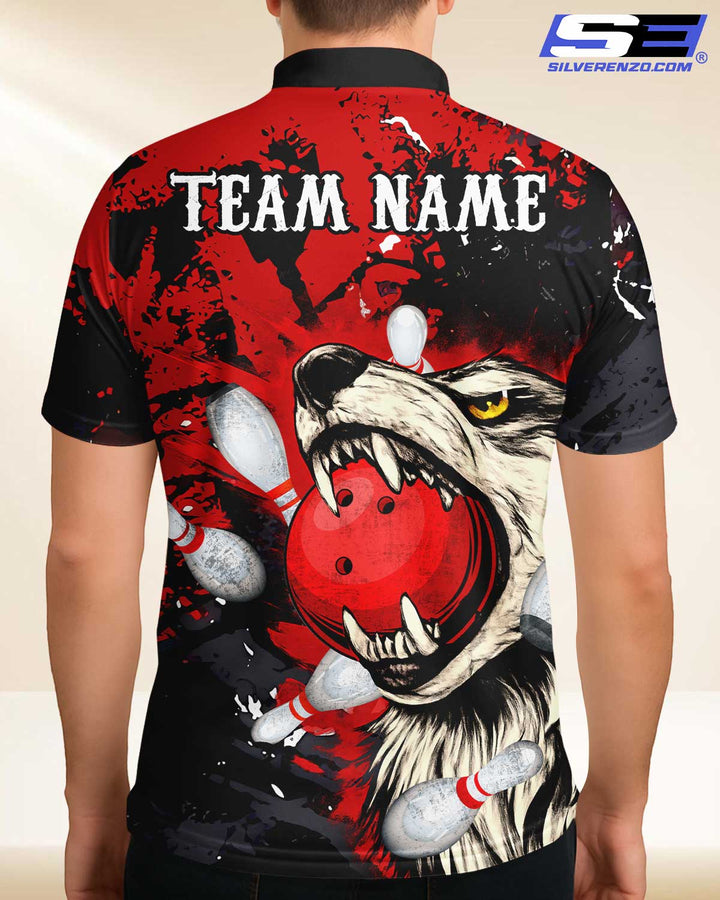 Personalized Bowling And Pins Wolf Men Women Polo Shirt Custom Name Bowling Team Jersey