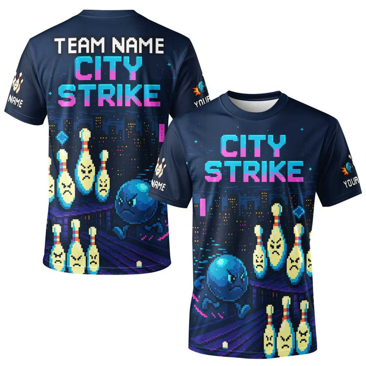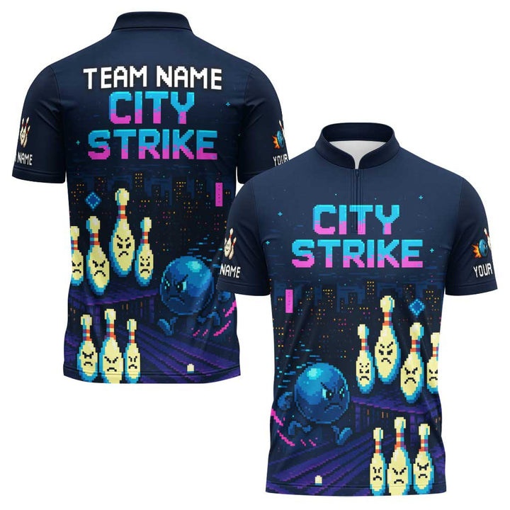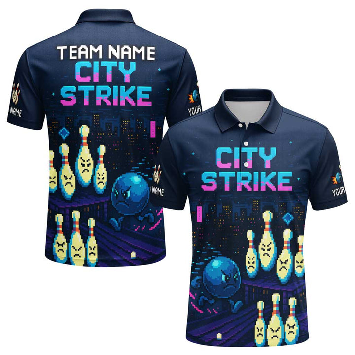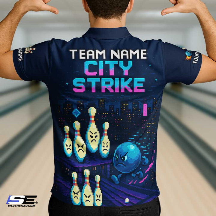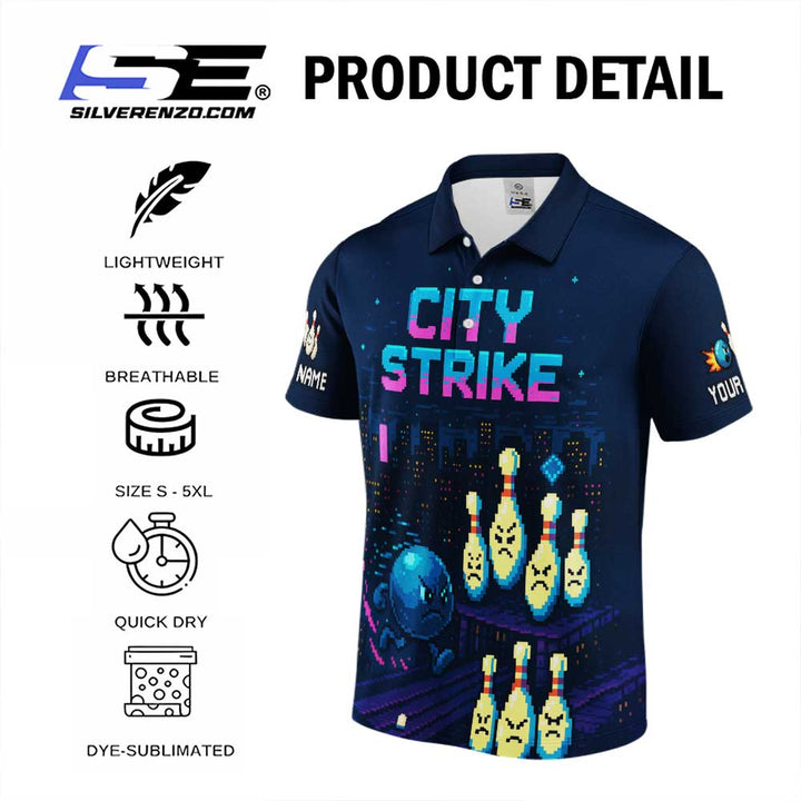 Personalized Bowling City Strike Men Women Performance Polo Shirt Custom Name Bowling Team Jersey