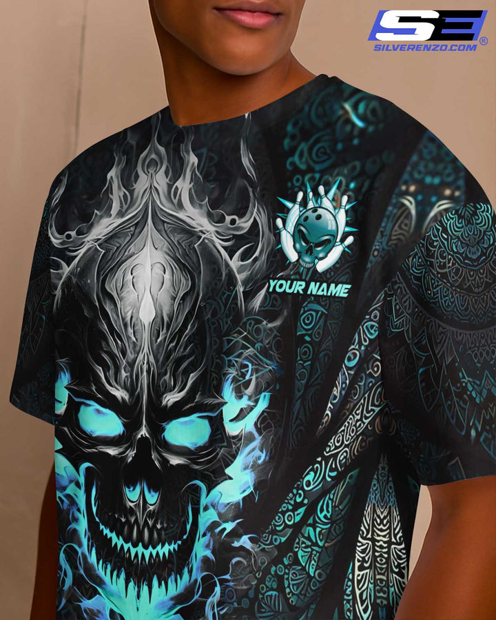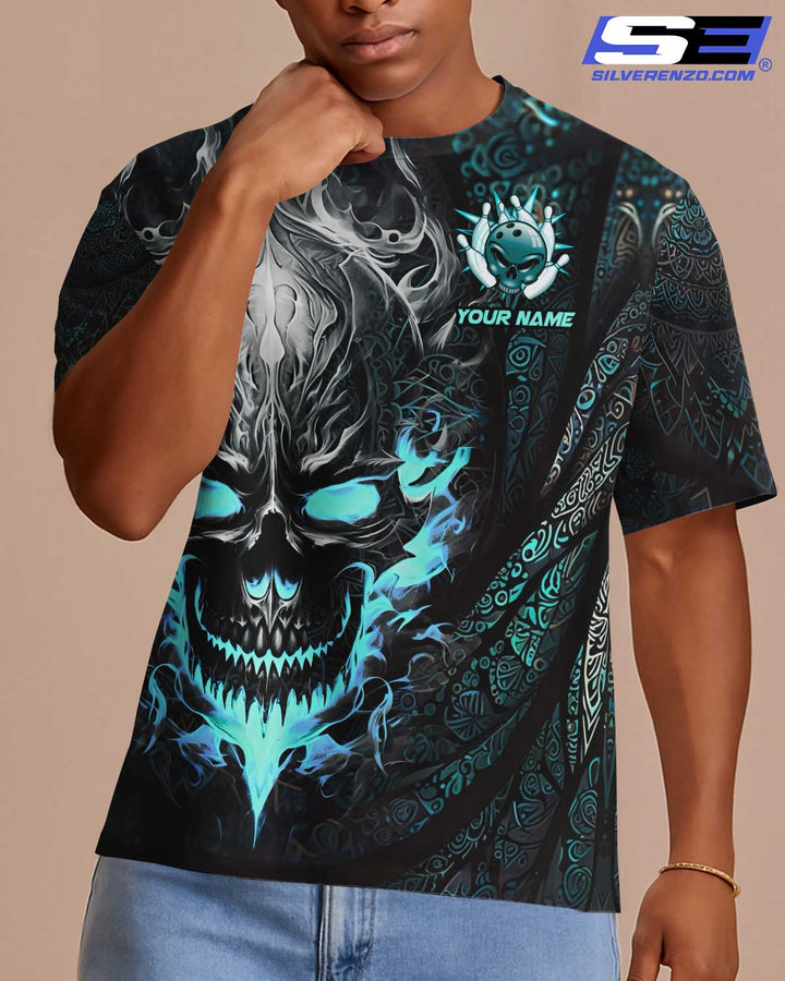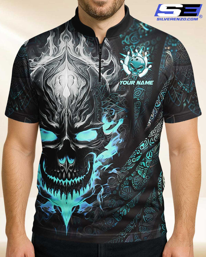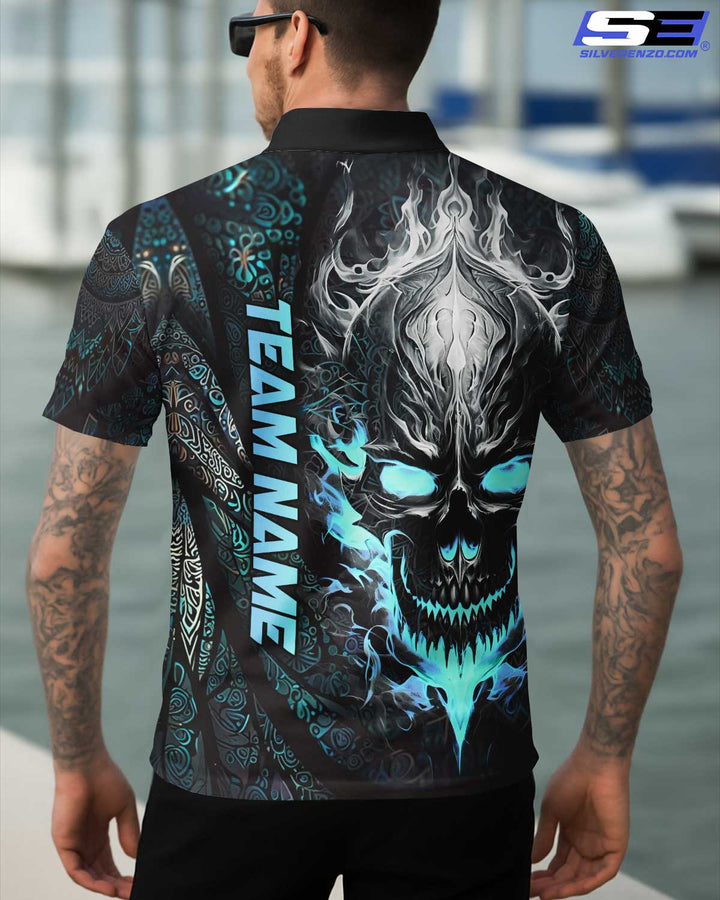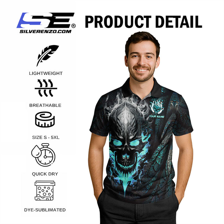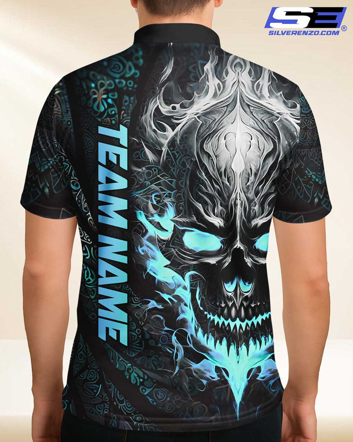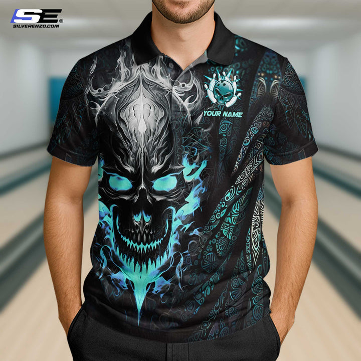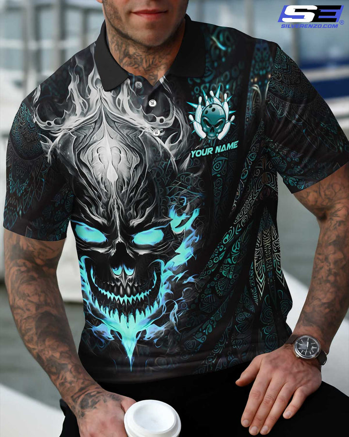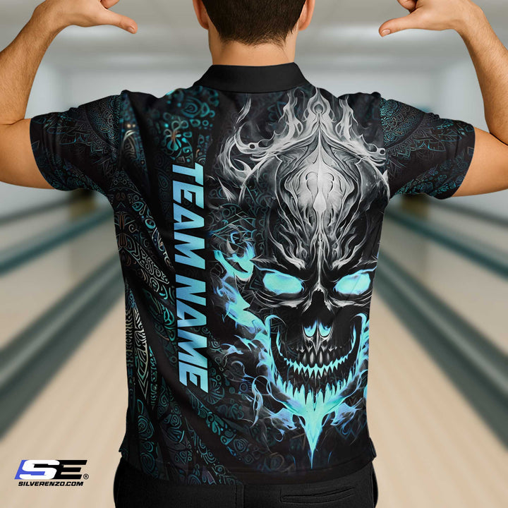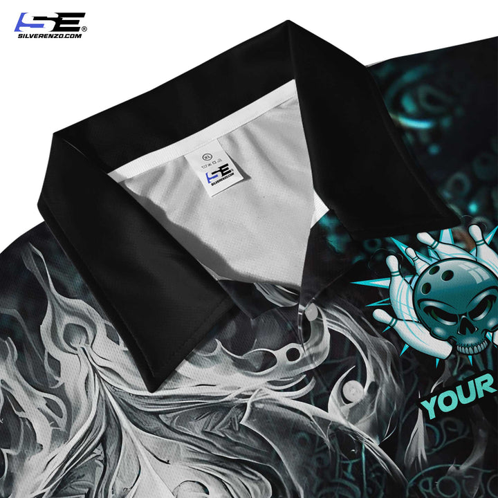 Personalized Bowling Skull Men Women Polo Shirt Custom Name Bowling Team Jersey