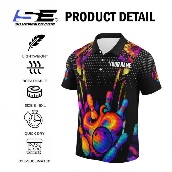 Personalized Bowling Colorful Men Women Performance Polo Shirt Custom Name Bowling Team Jersey