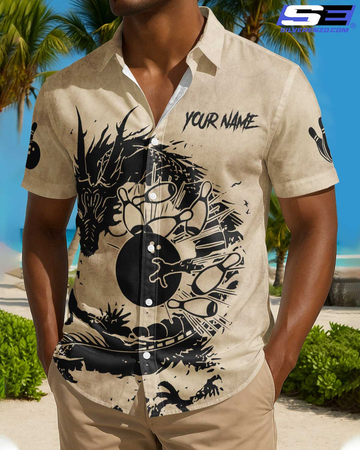 Personalized Bowling Dragon Men Women Hawaiian Shirt Custom Name Bowling Team Jersey