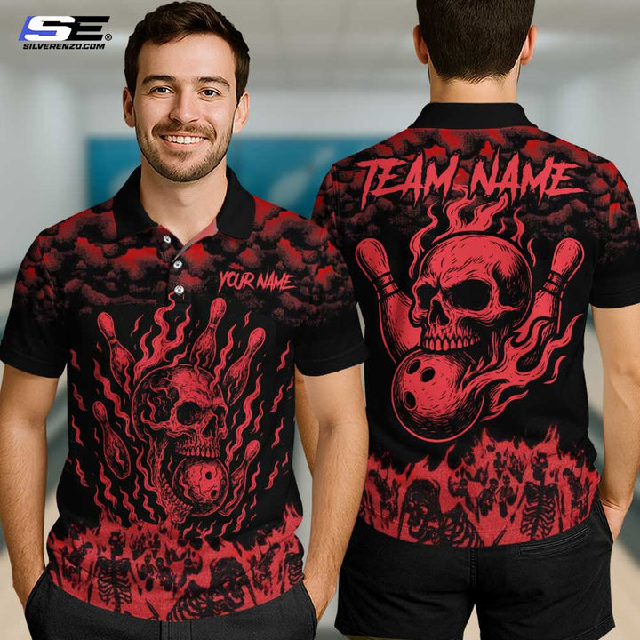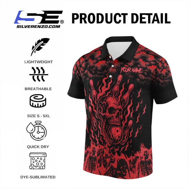 Personalized Bowling Dark Skull Men Women Performance Polo Shirt Custom Name Bowling Team Jersey