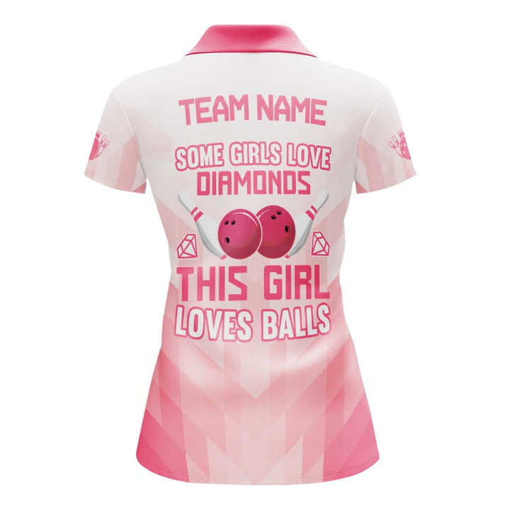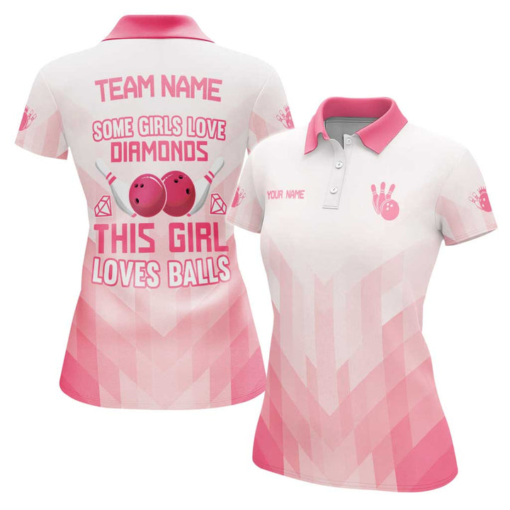 Personalized Bowling Diamond Women Performance Polo Shirt Custom Name Bowling Team Jersey