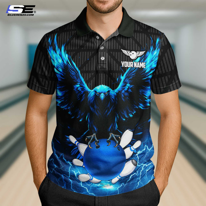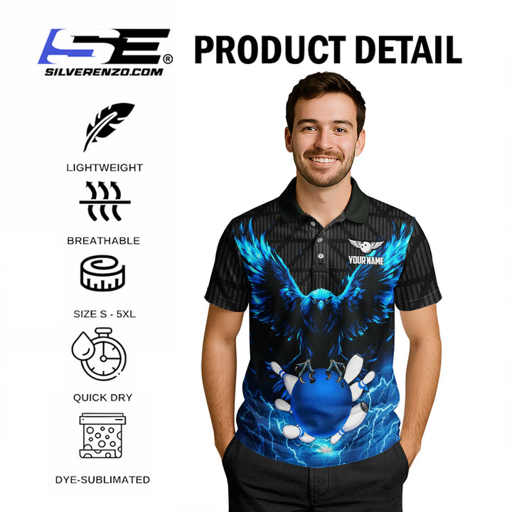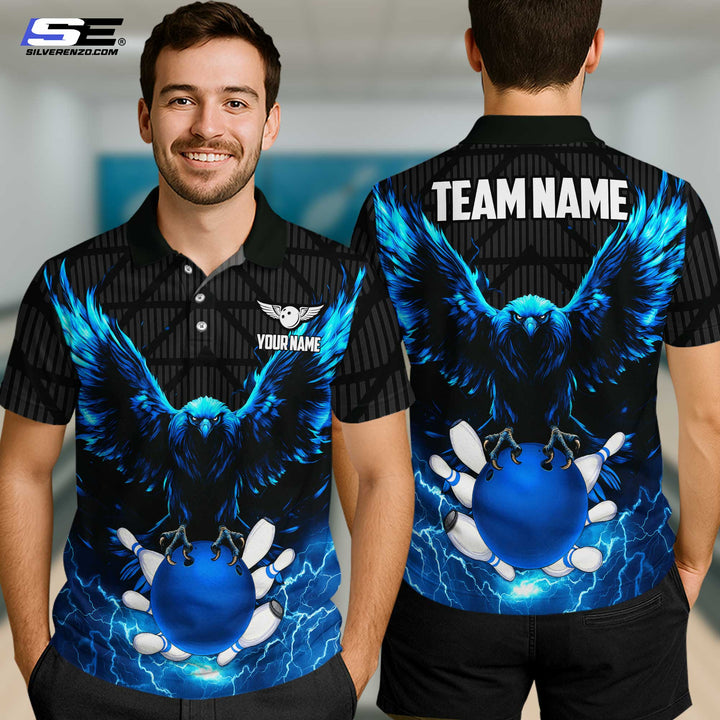 Personalized Bowling Eagle Lightning Men Women Performance Polo Shirt Custom Name Bowling Team Jersey