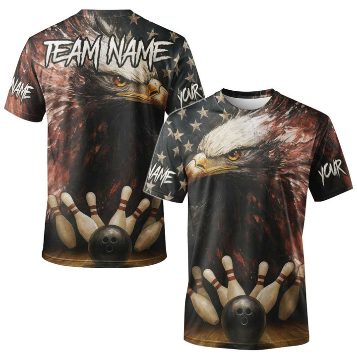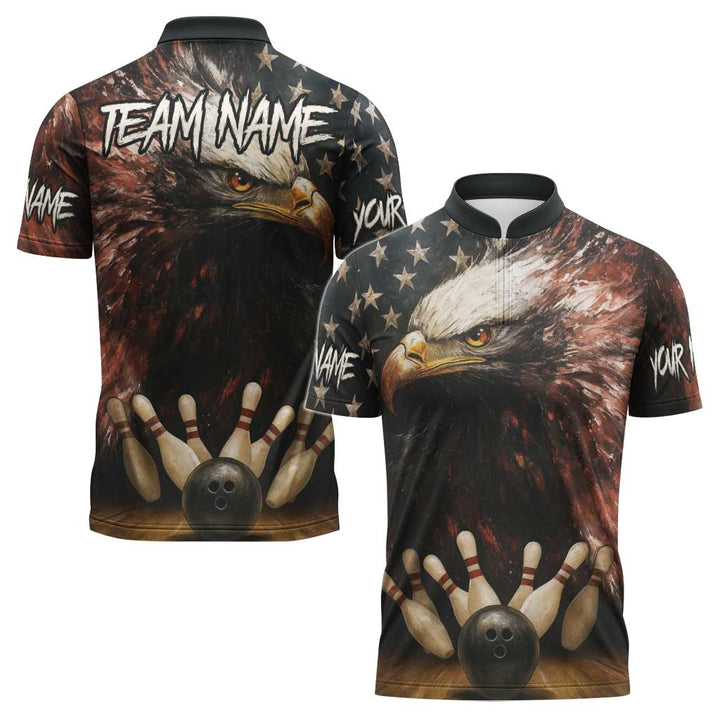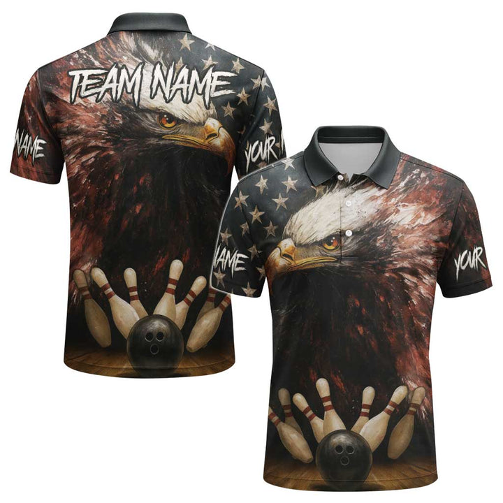 Personalized Bowling Eagle Patriot Men Women Polo Shirt Custom Name Bowling Team Jersey