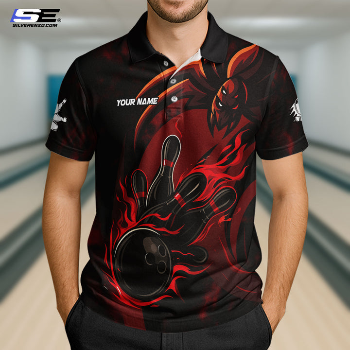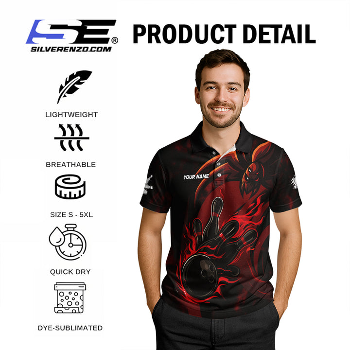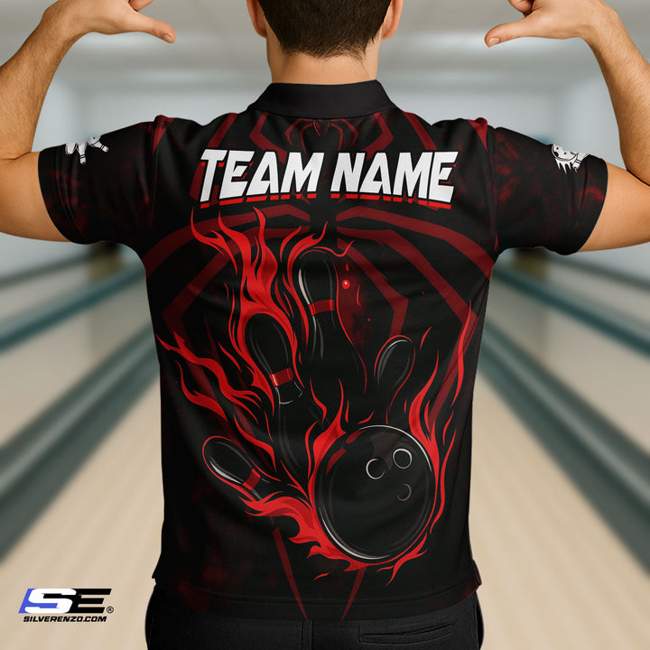 Personalized Flame Bowling And Spider Men Women Polo Shirt Custom Name Bowling Team Jersey