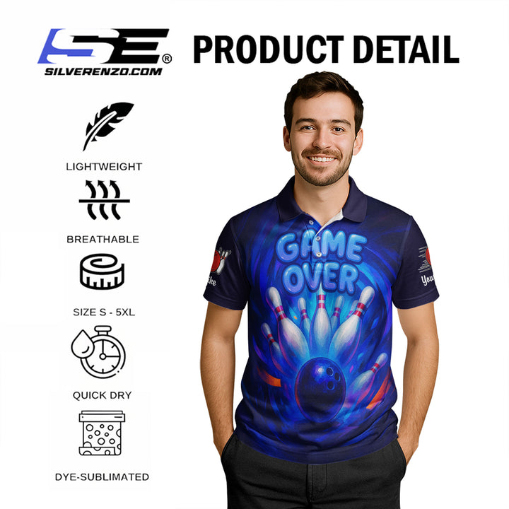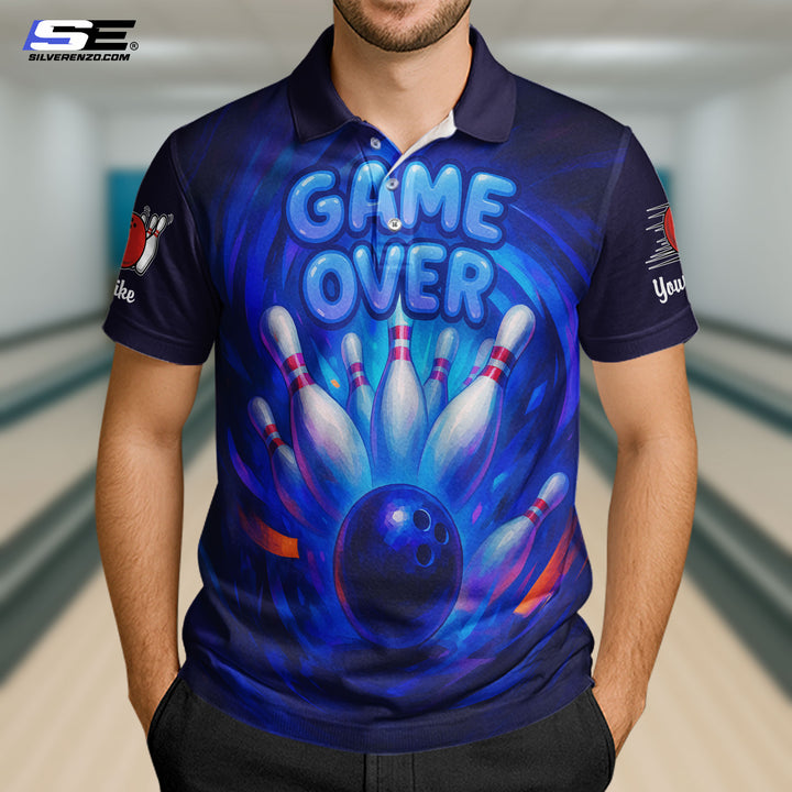 Personalized Bowling Strike Game Over Men Women Polo Shirt Custom Name Bowling Team Jersey
