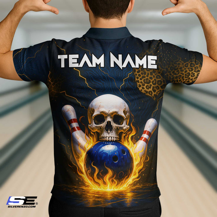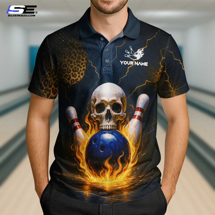 Personalized Bowling Flame Skull Leopard Men Women Polo Shirt Custom Name Bowling Team Jersey