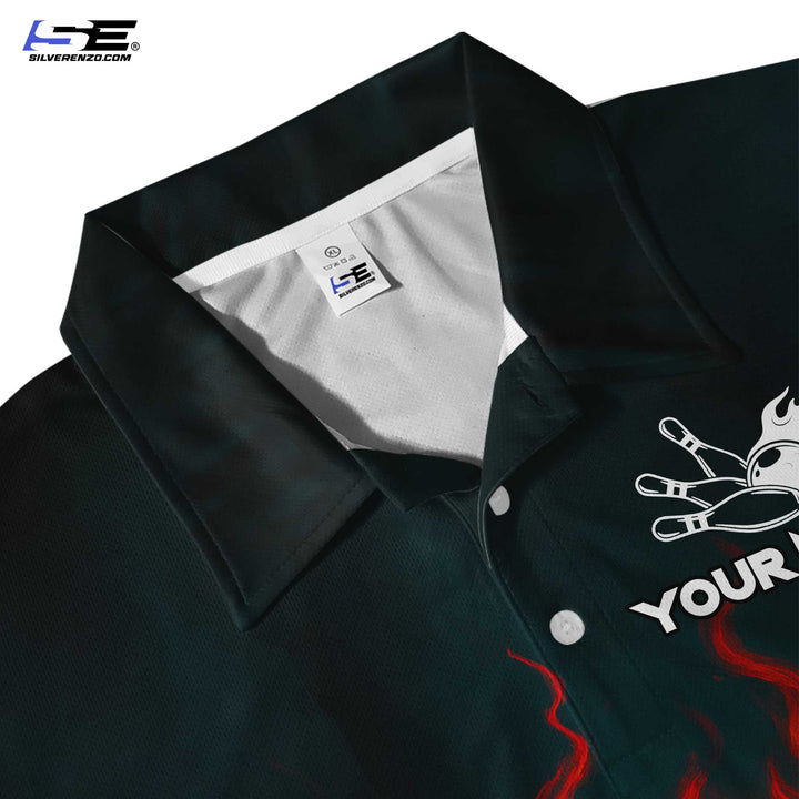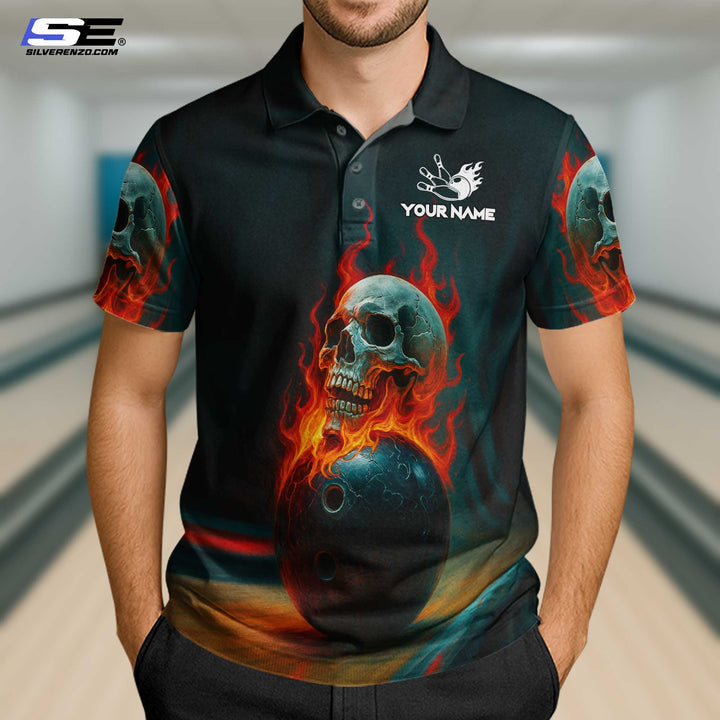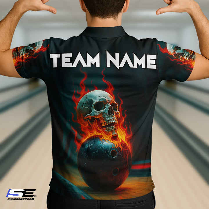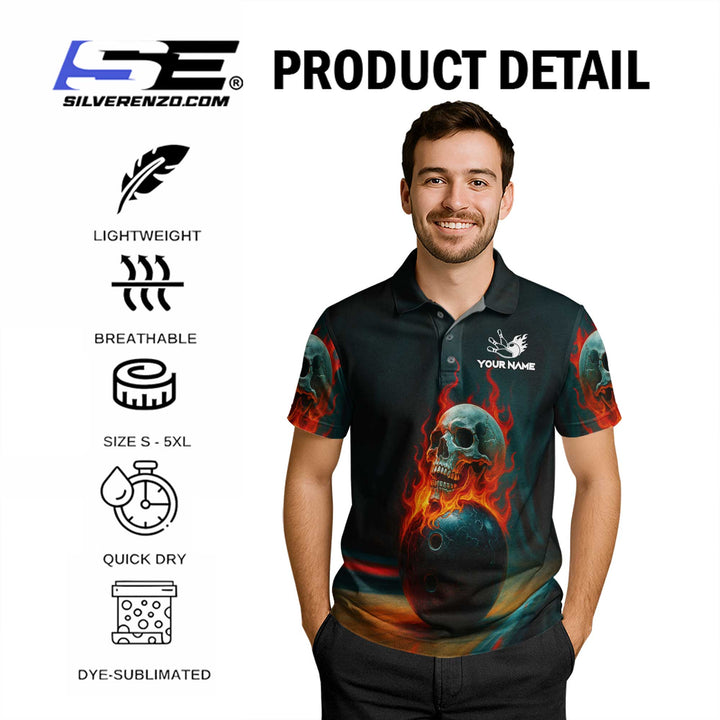 Personalized Bowling Flame Skull Men Women Polo Shirt Custom Name Bowling Team Jersey