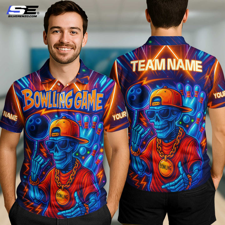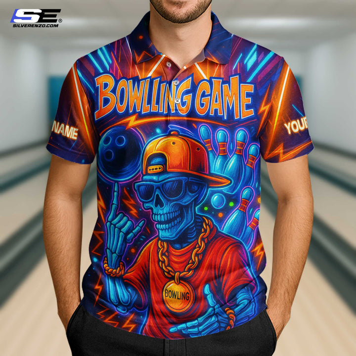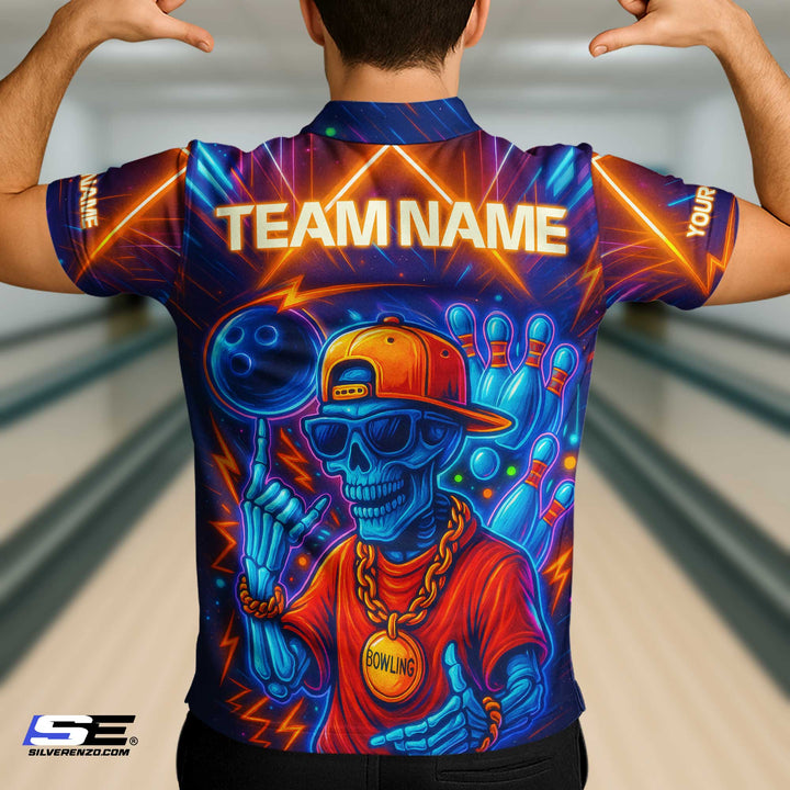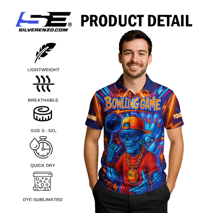 Personalized Bowling Game Skull Gangster Men Women Performance Polo Shirt Custom Name Bowling Team Jersey