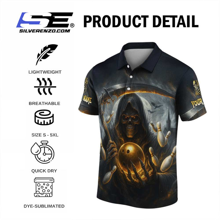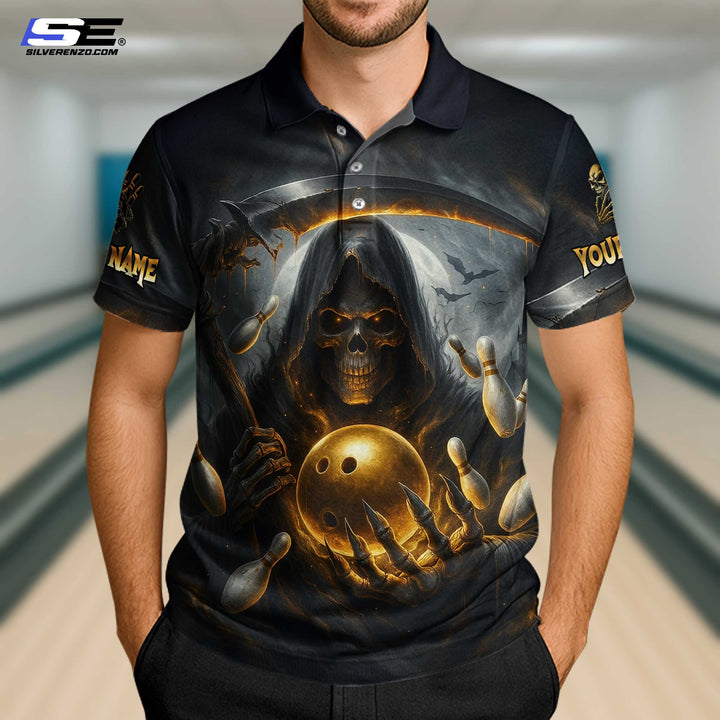 Personalized Bowling Gothic Reaper Men Women Polo Shirt Custom Name Bowling Team Jersey