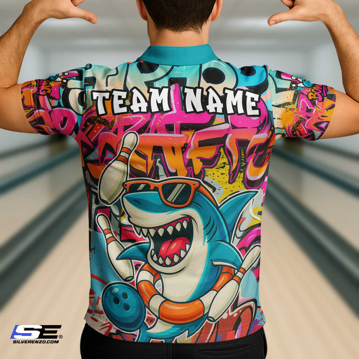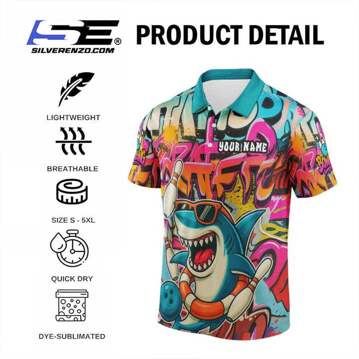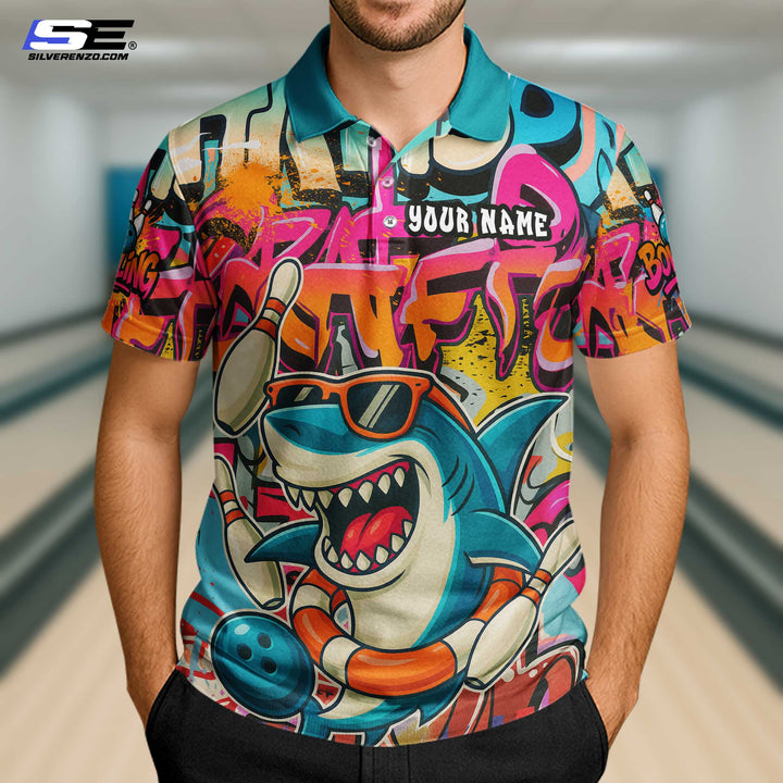 Personalized Bowling Graffiti Shark Men Women Polo Shirt Custom Name Bowling Team Jersey