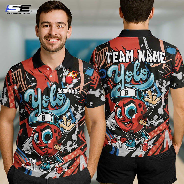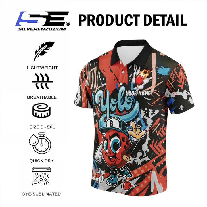 Personalized Bowling Graffiti Yolo Vibes Men Women Polo Shirt Custom Name Bowling Team Jersey