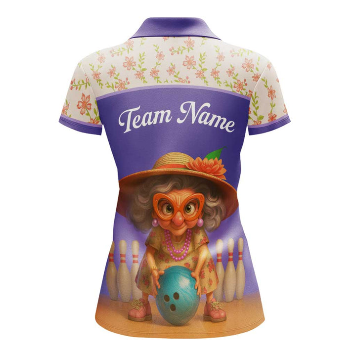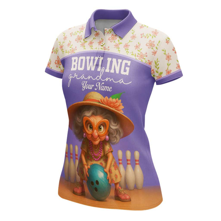 Personalized Bowling Grandma Women Performance Polo Shirt Custom Name Bowling Team Jersey