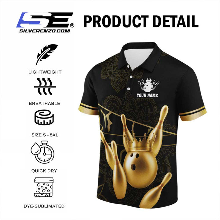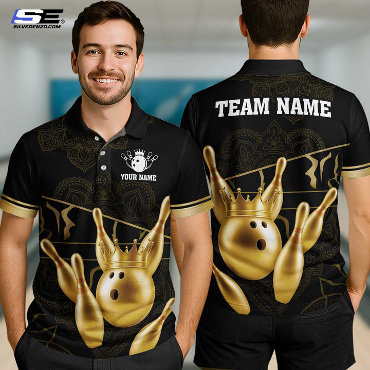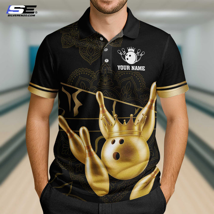 Personalized Bowling King Mandala Men Women Polo Shirt Custom Name Bowling Team Jersey