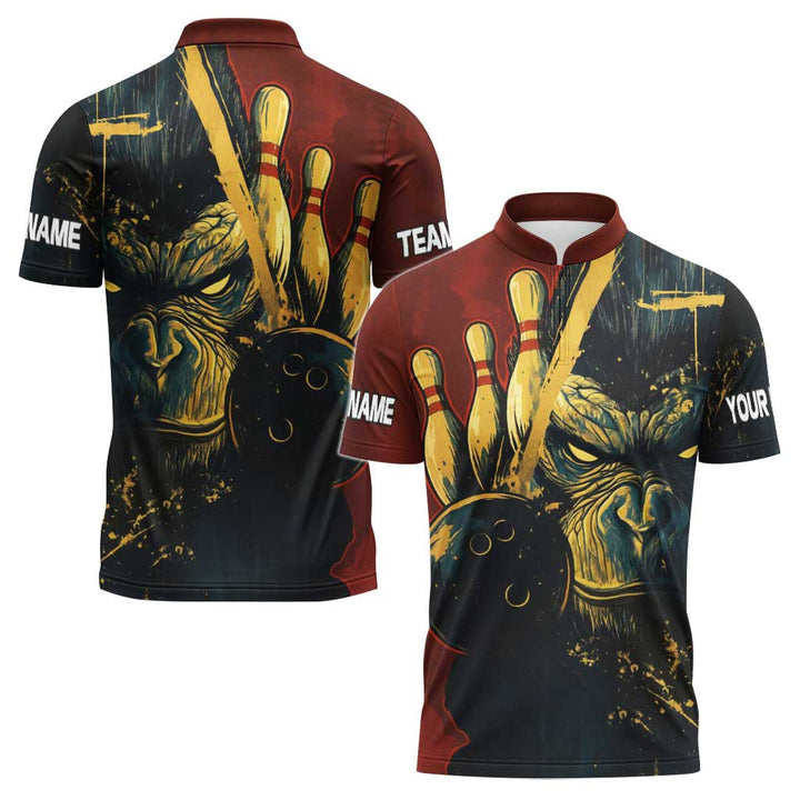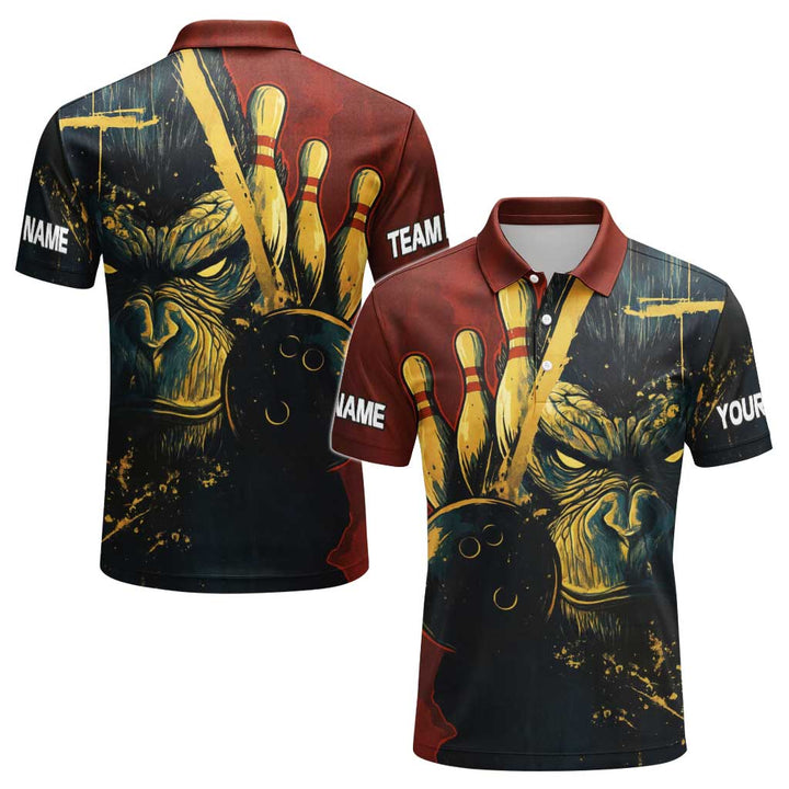 Personalized Bowling Kong Men Women Polo Shirt Custom Name Bowling Team Jersey