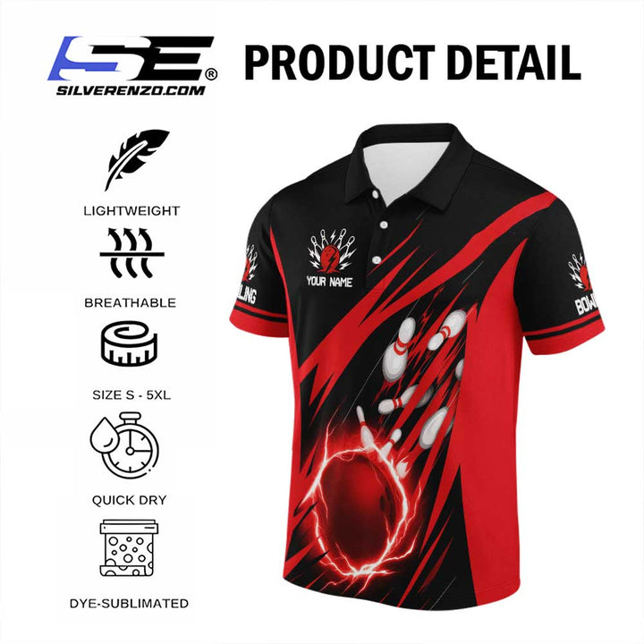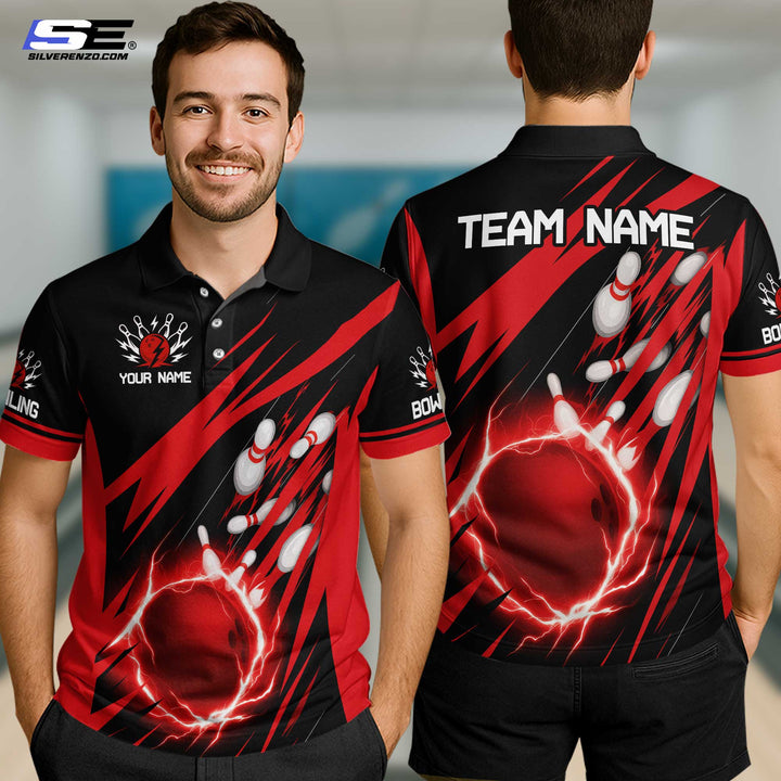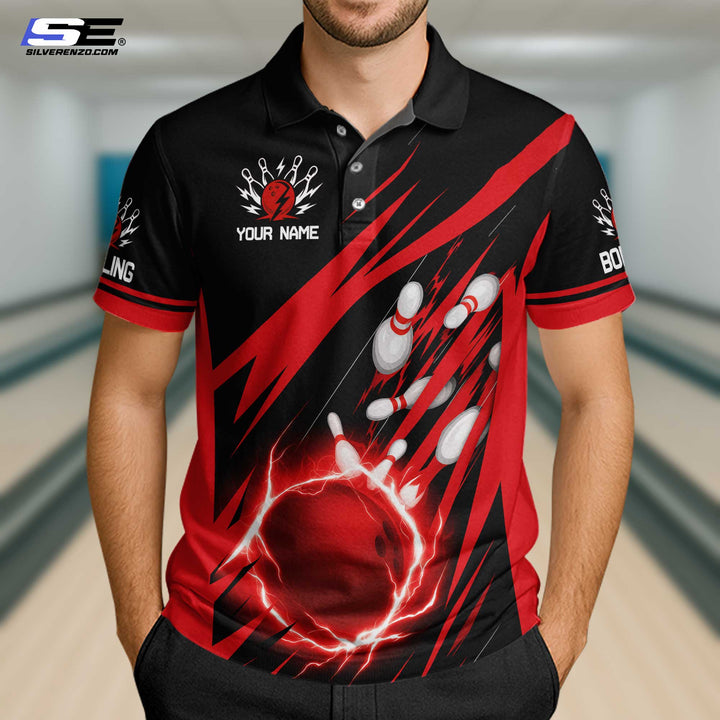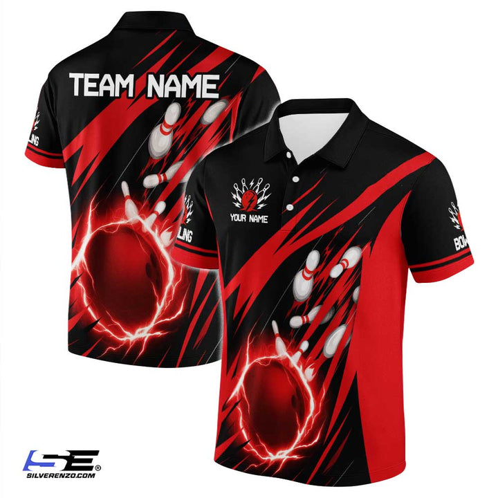 Personalized Bowling Lightning Men Women Polo Shirt Custom Name Bowling Team Jersey