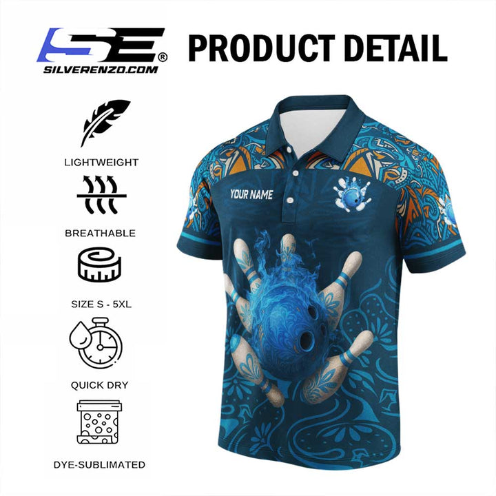 Personalized Bowling Mandala Men Women Performance Polo Shirt Custom Name Bowling Team Jersey