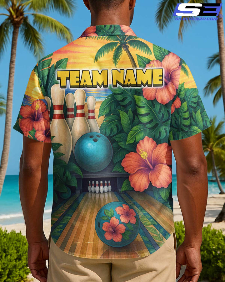 Personalized Bowling Tropical Vibe Men Women Hawaiian Shirt Custom Name Bowling Team Jersey