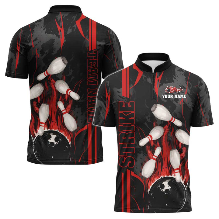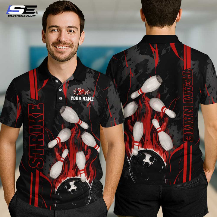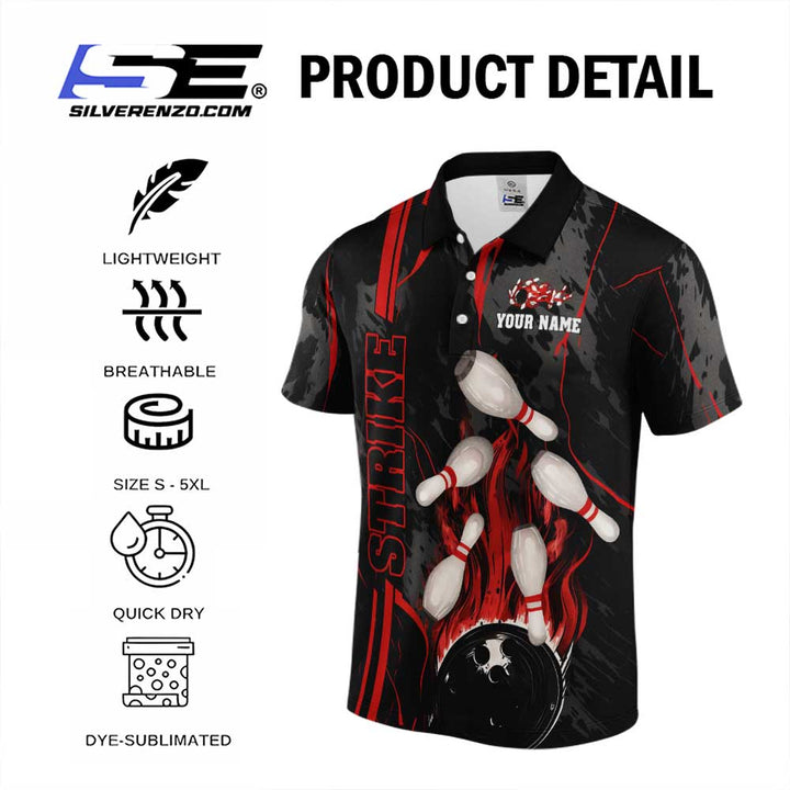 Personalized Bowling Strike Men Women Performance Polo Shirt Custom Name Bowling Team Jersey