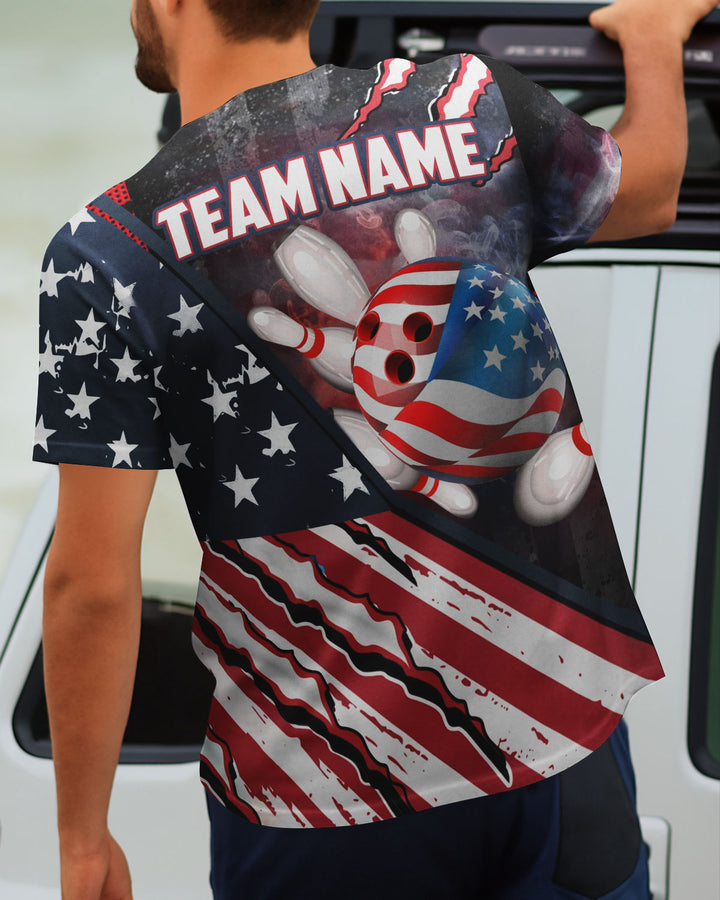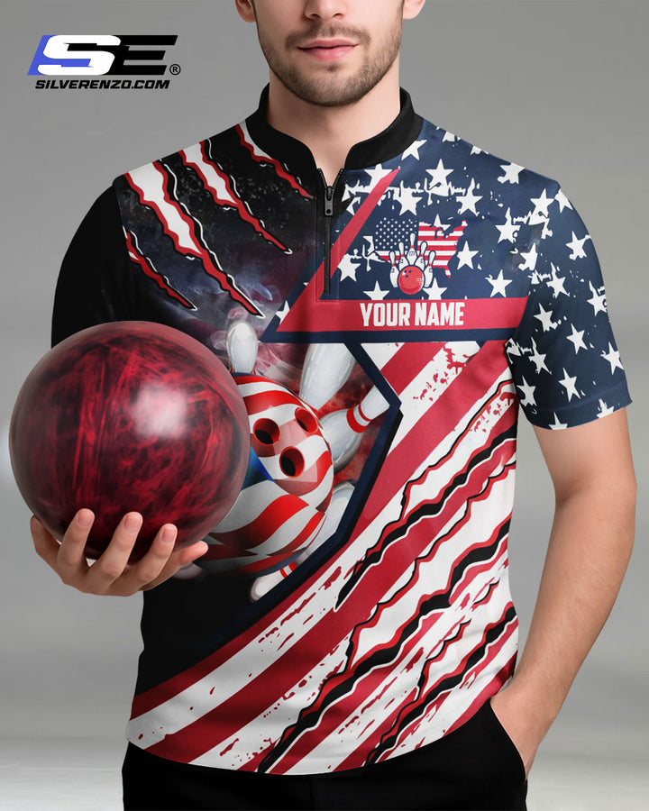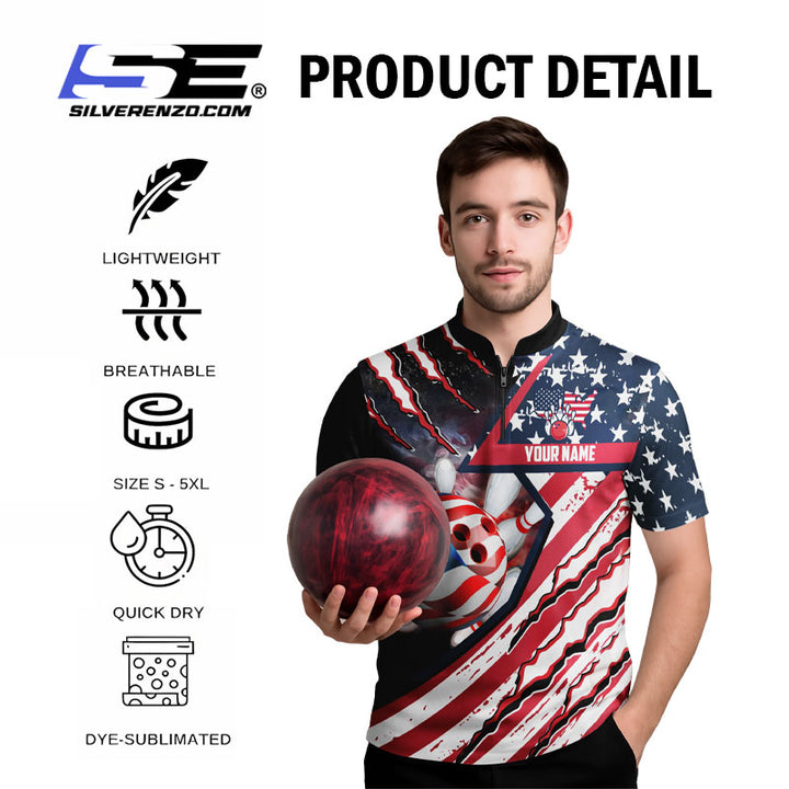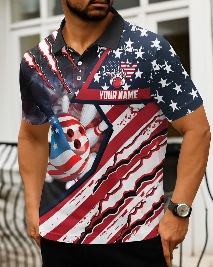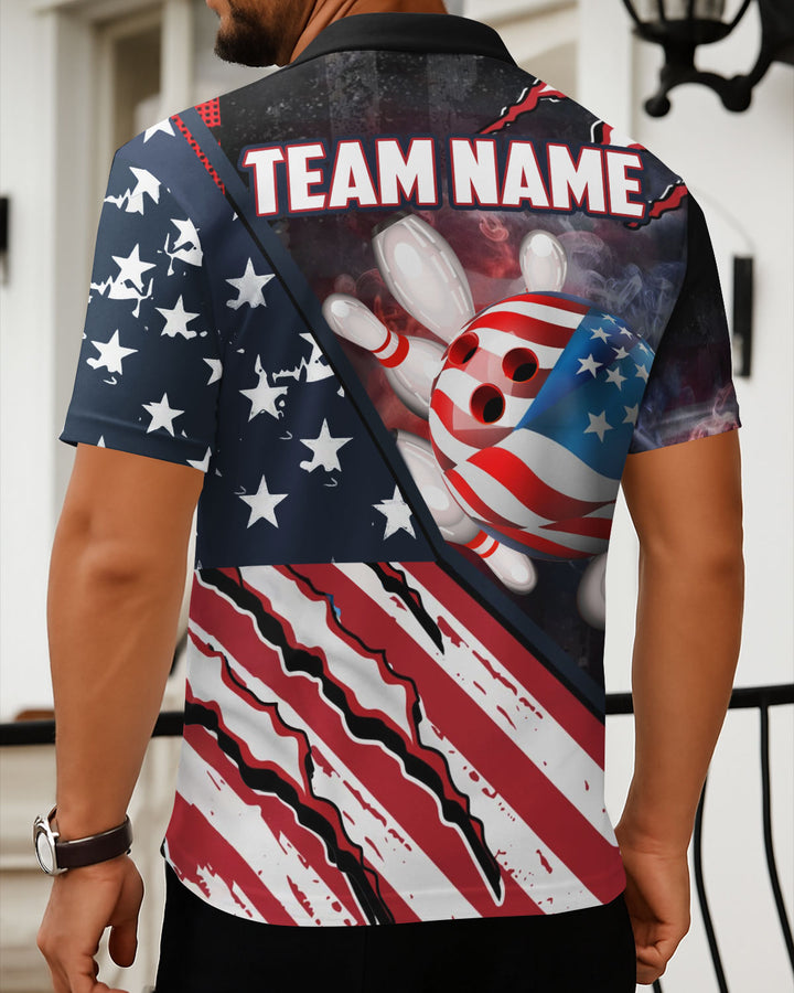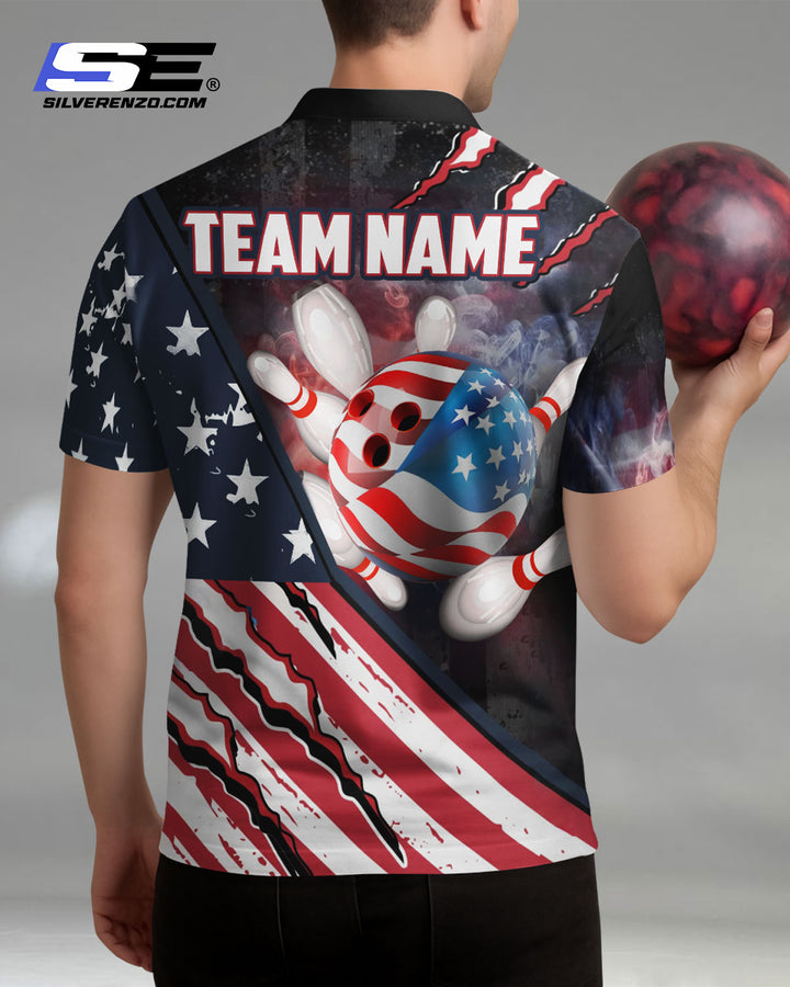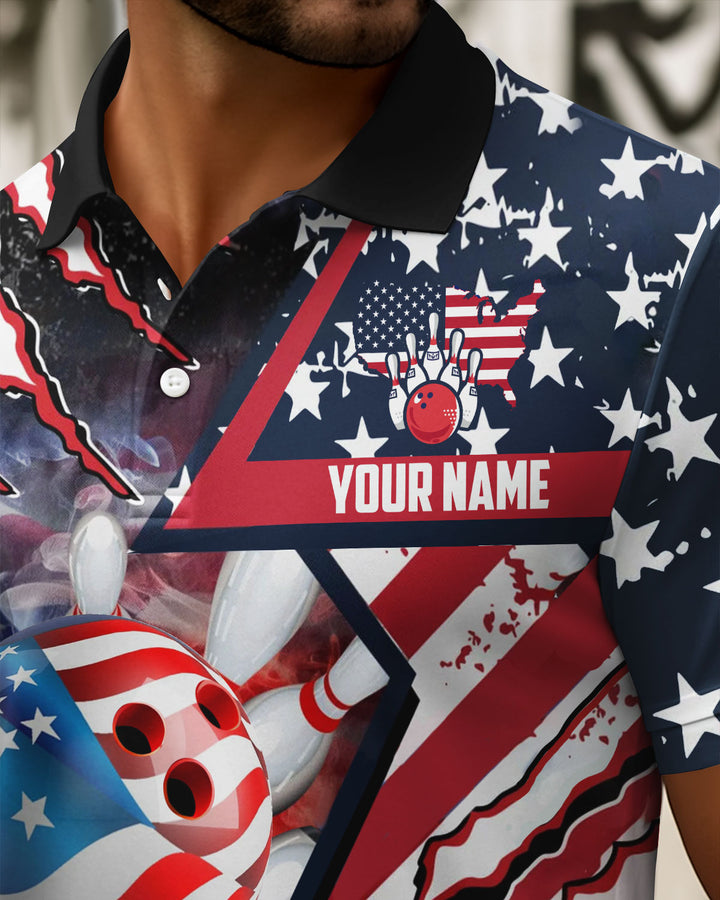 Personalized Bowling US Flag Men Women Polo Shirt Custom Name Bowling Team Jersey