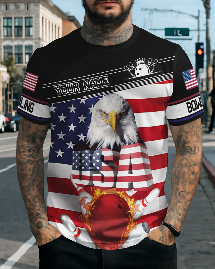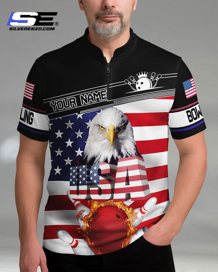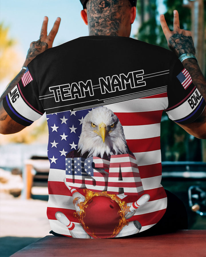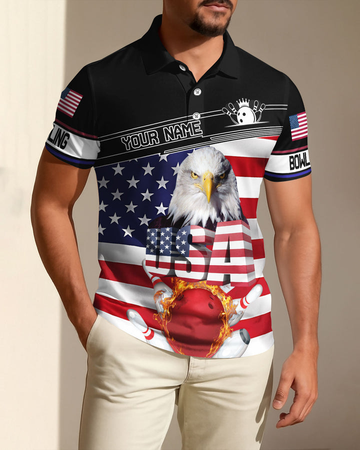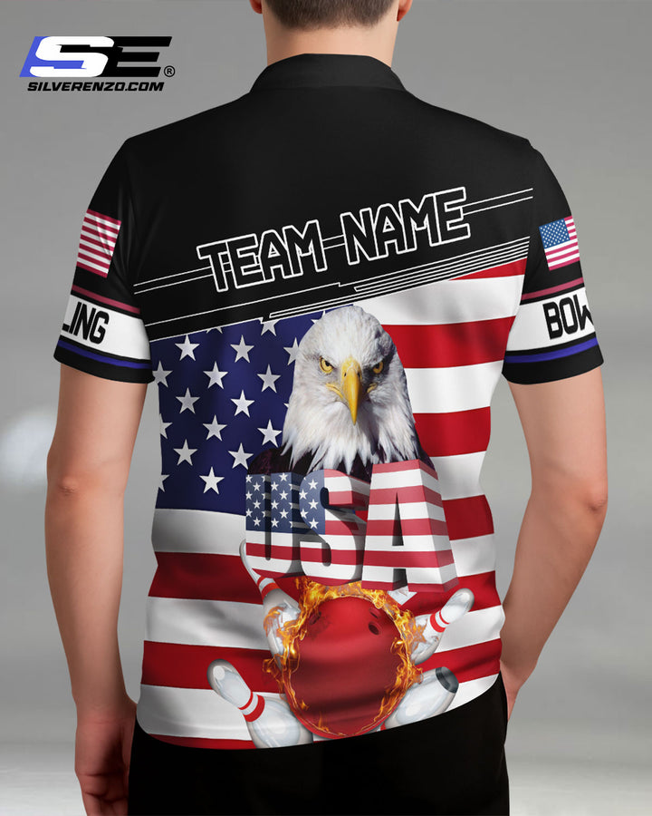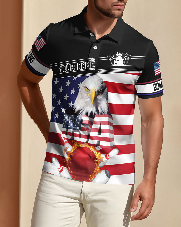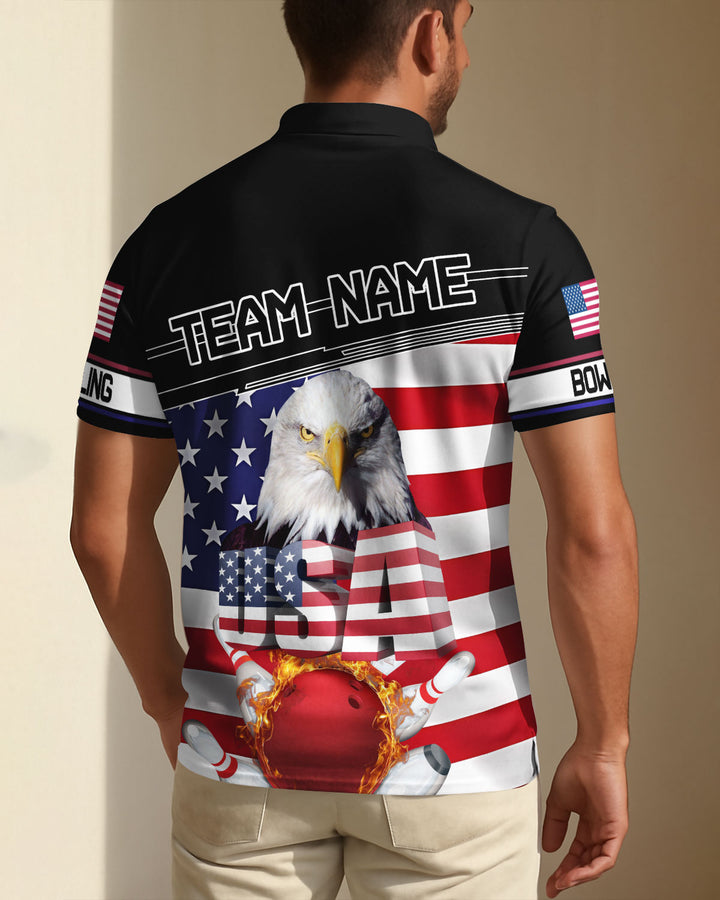 Personalized Bowling US Patriotic Eagle Men Women Polo Shirt Custom Name Bowling Team Jersey