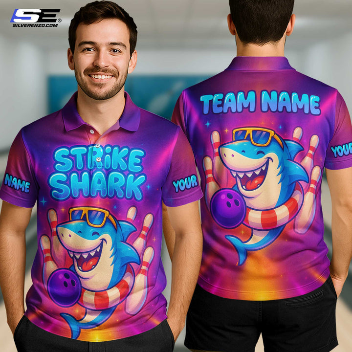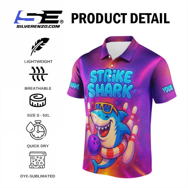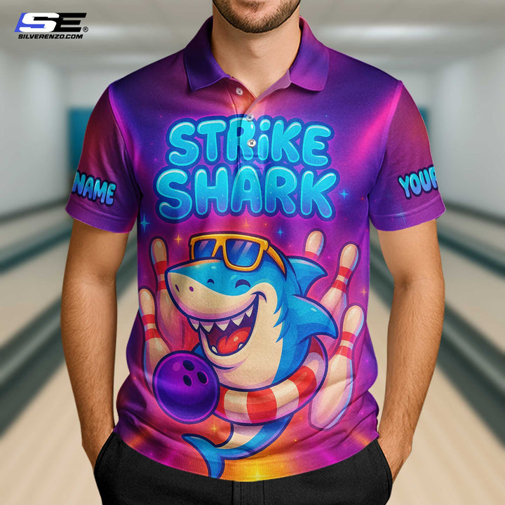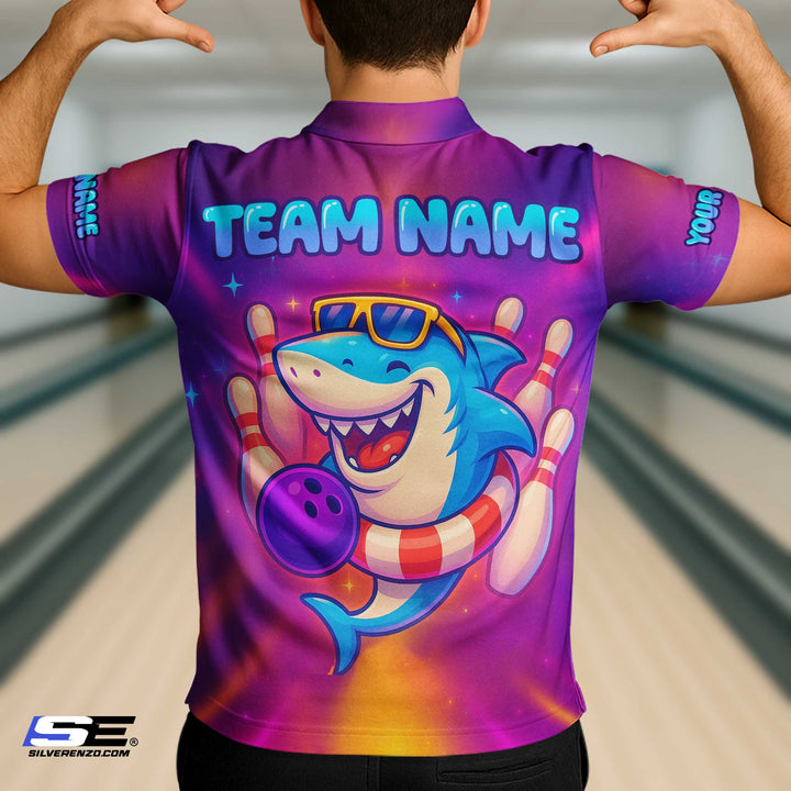 Personalized Bowling Neon Strike Shark Men Women Polo Shirt Custom Name Bowling Team Jersey