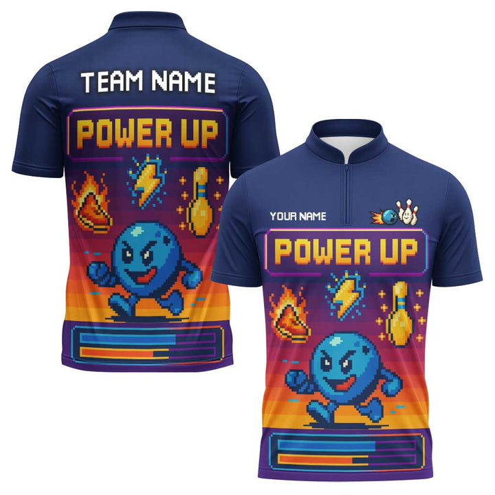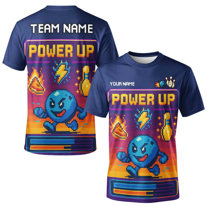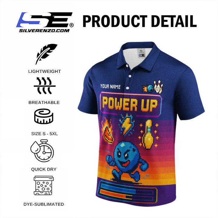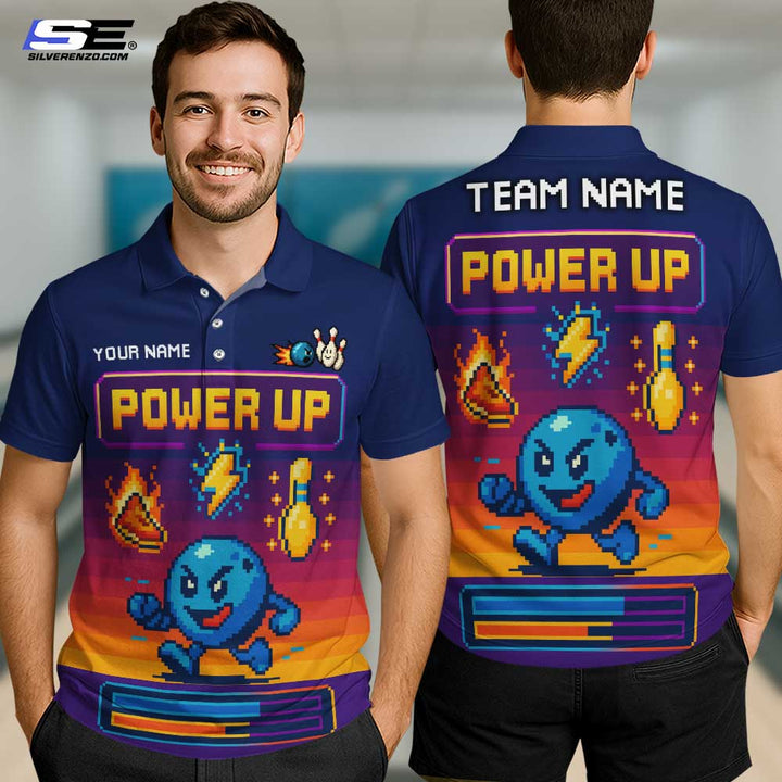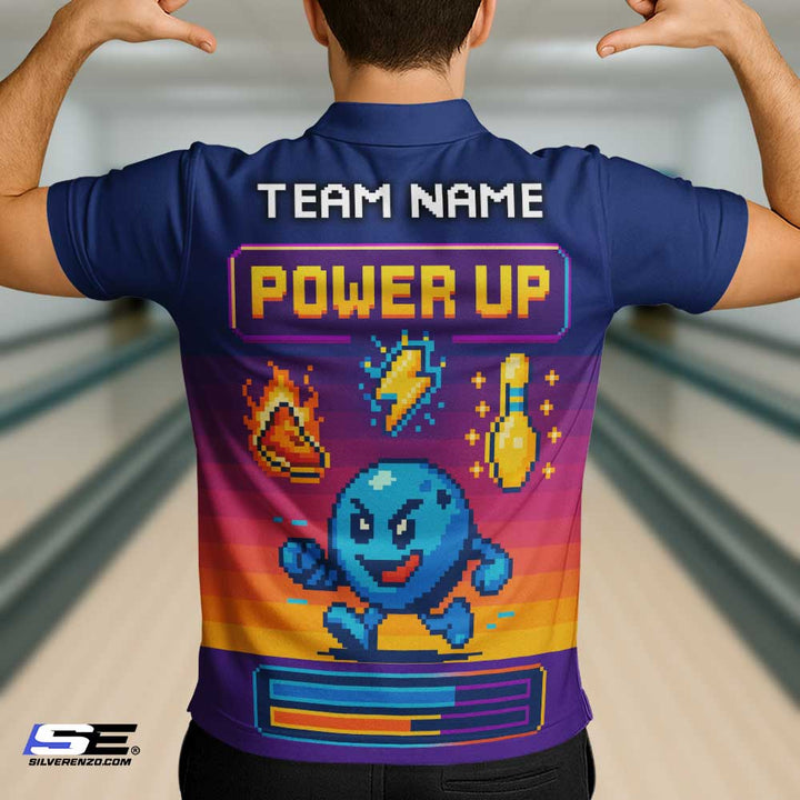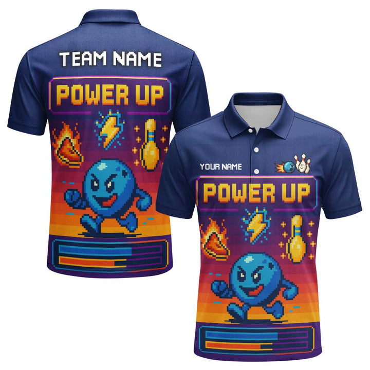 Personalized Bowling Power Up Men Women Performance Polo Shirt Custom Name Bowling Team Jersey