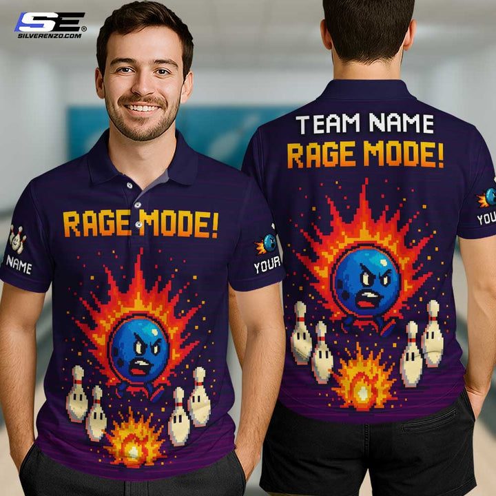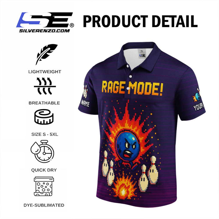 Personalized Bowling Rage Mode Men Women Performance Polo Shirt Custom Name Bowling Team Jersey