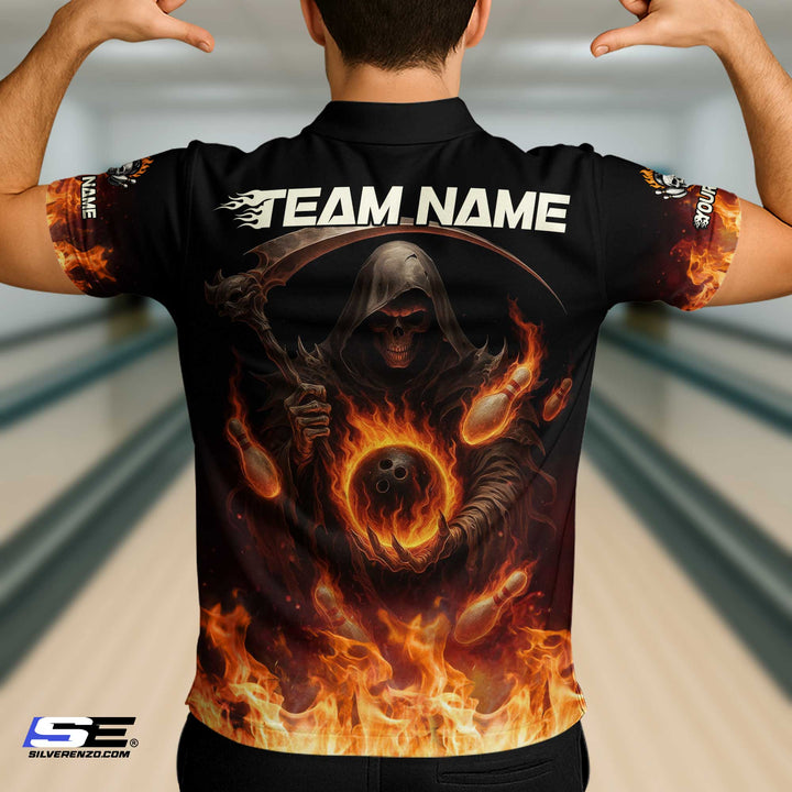 Personalized Bowling Reaper Flaming Gothic Men Women Polo Shirt Custom Name Bowling Team Jersey