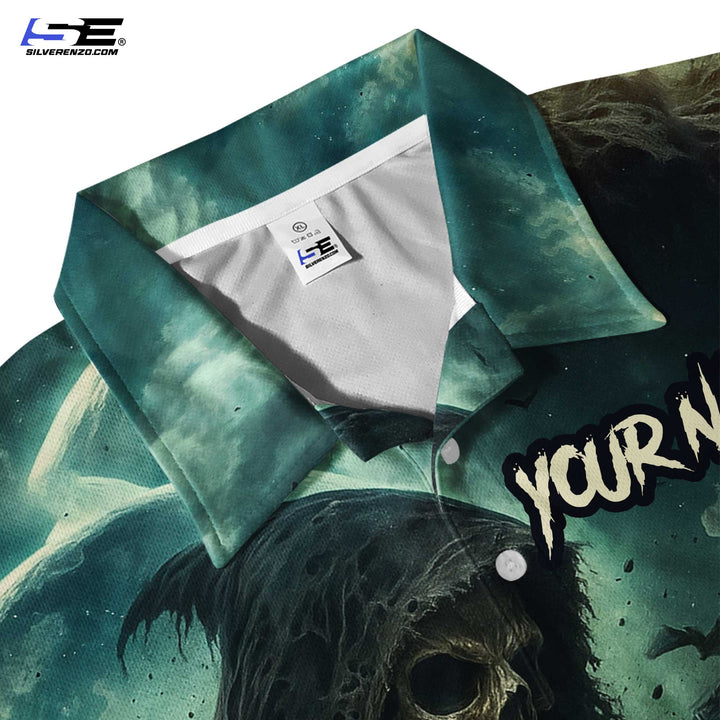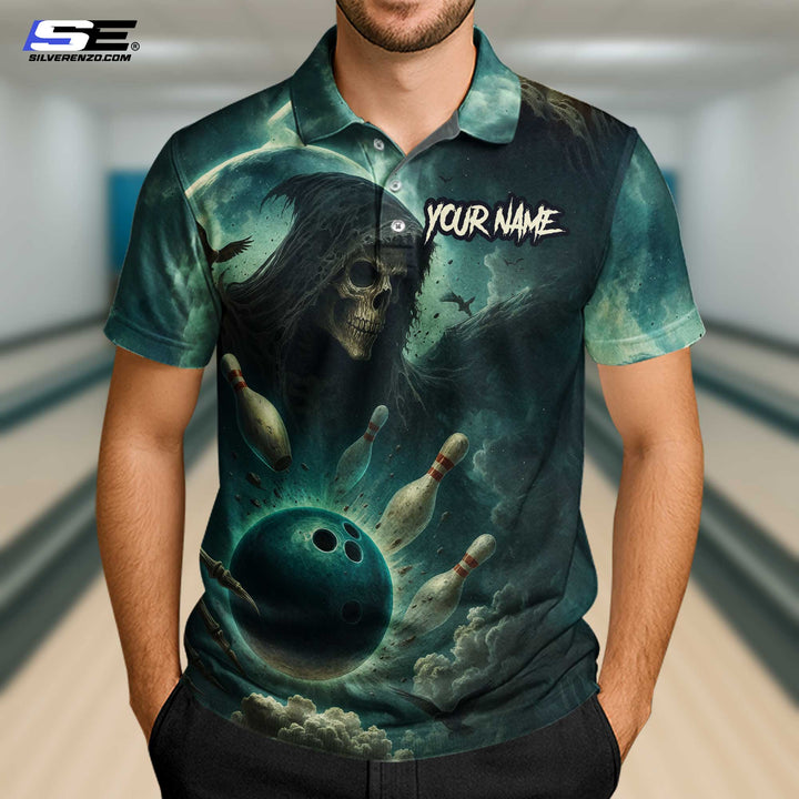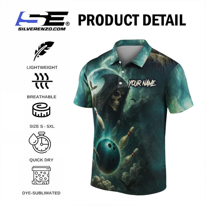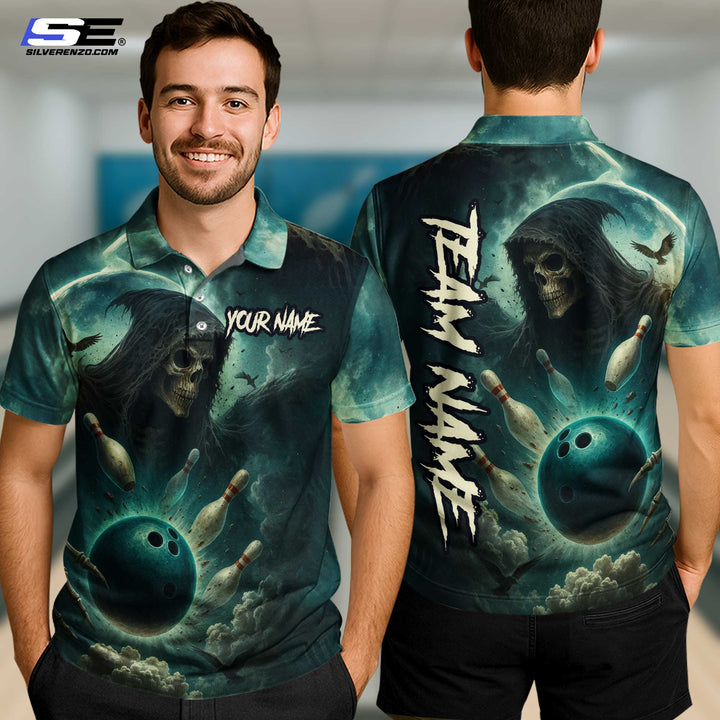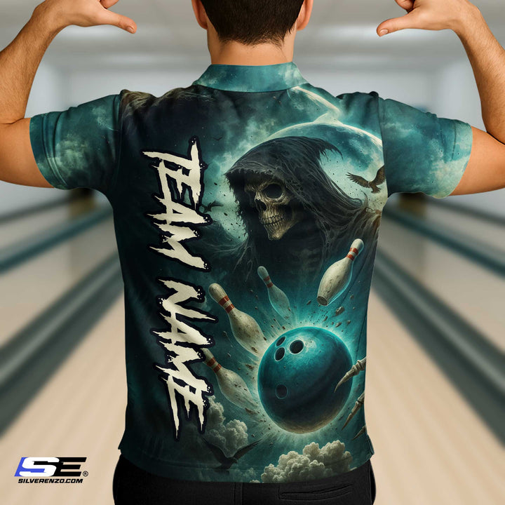 Personalized Bowling Reaper Gothic Men Women Polo Shirt Custom Name Bowling Team Jersey