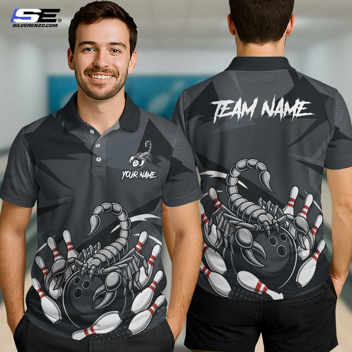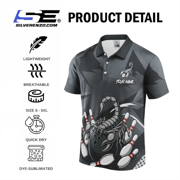Personalized Bowling Scorpion Men Women Performance Polo Shirt Custom Name Bowling Team Jersey