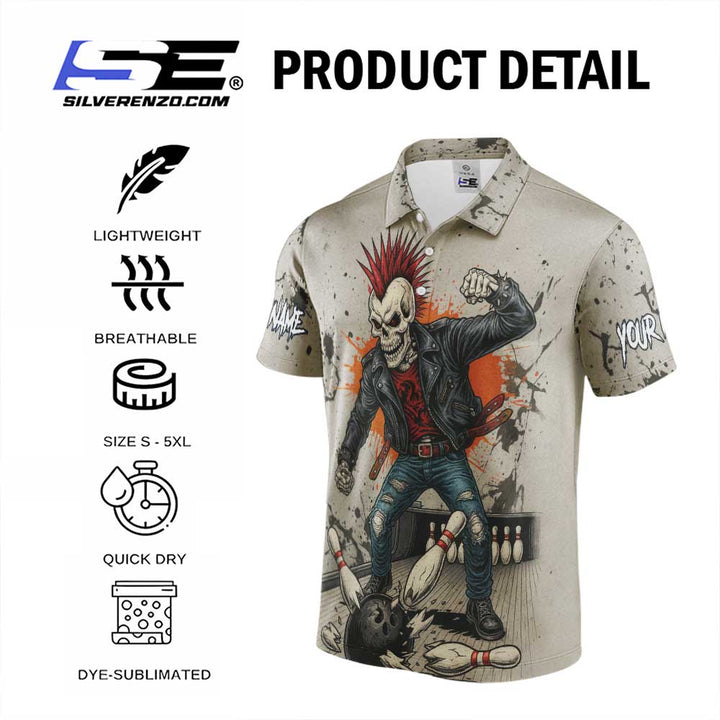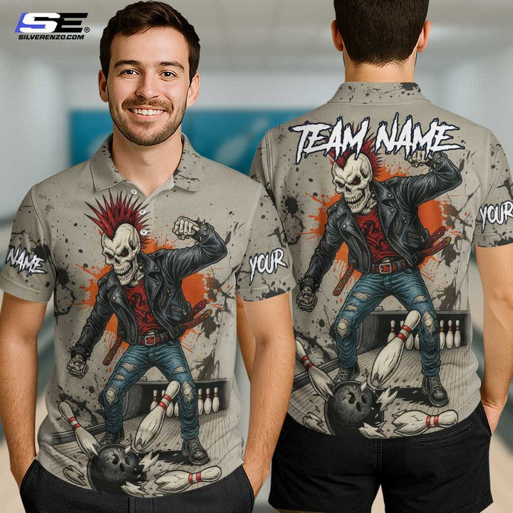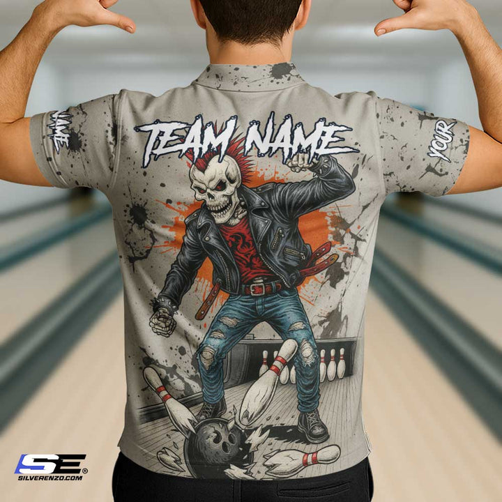 Personalized Bowling Skull Gangster Men Women Performance Polo Shirt Custom Name Bowling Team Jersey