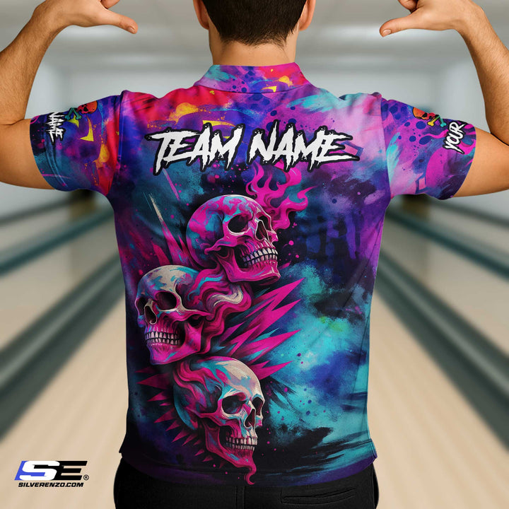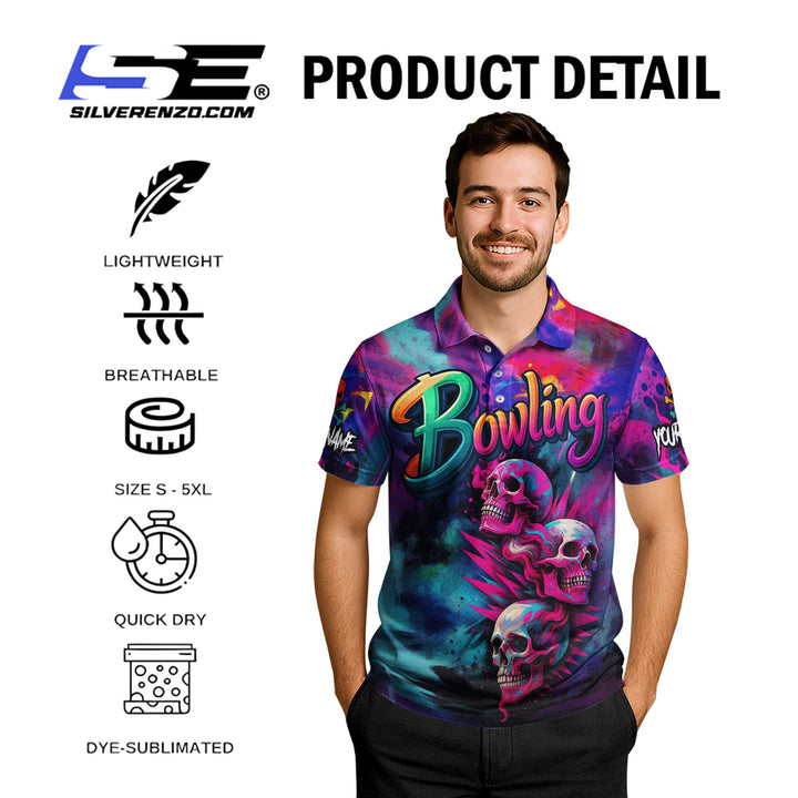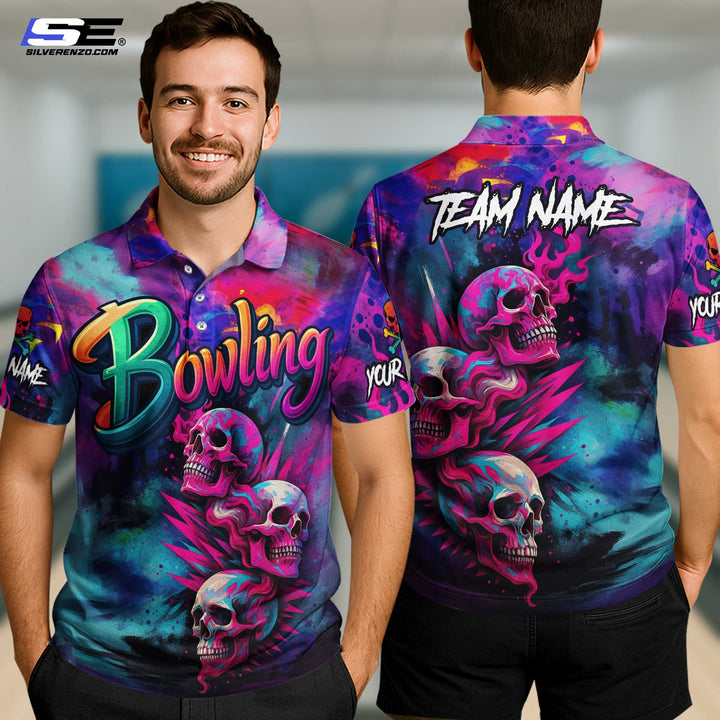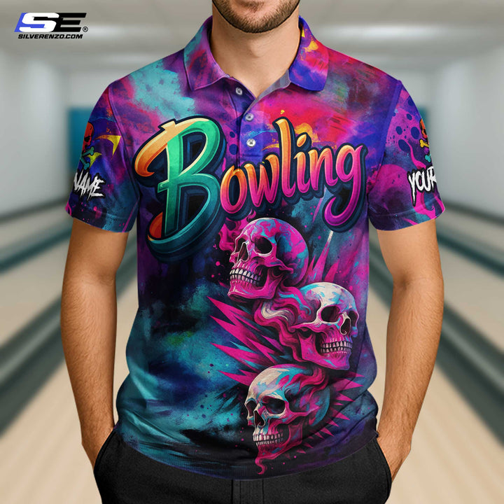 Personalized Bowling Skull Graffiti Men Women Polo Shirt Custom Name Bowling Team Jersey