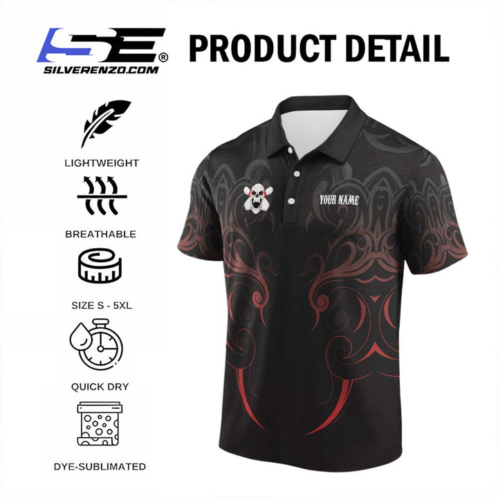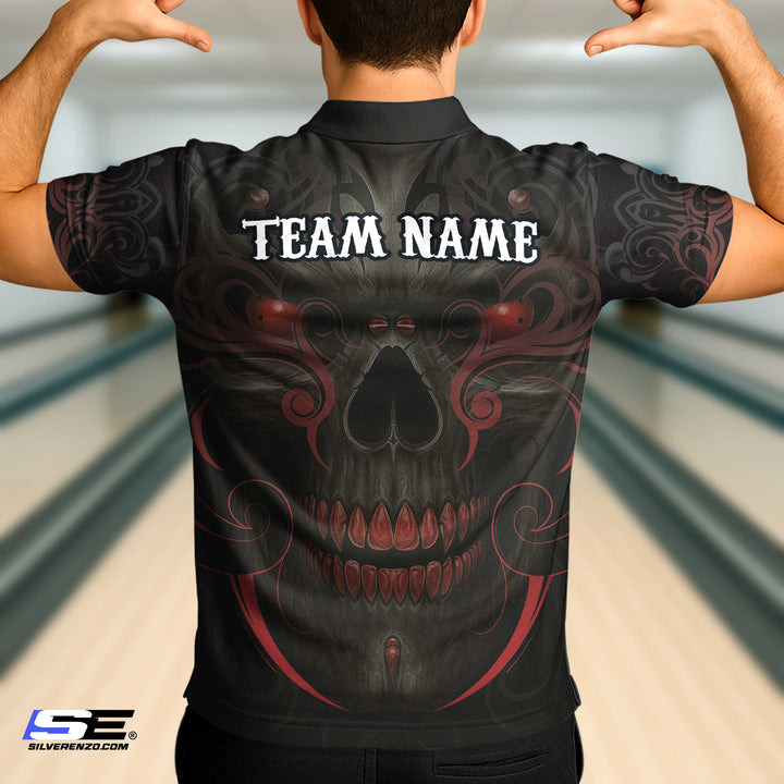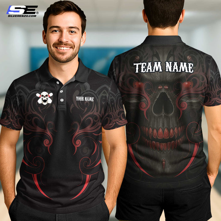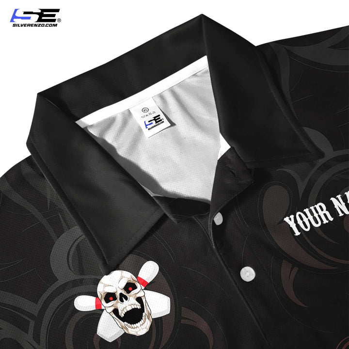 Personalized Bowling Skull Mandala Men Women Performance Polo Shirt Custom Name Bowling Team Jersey