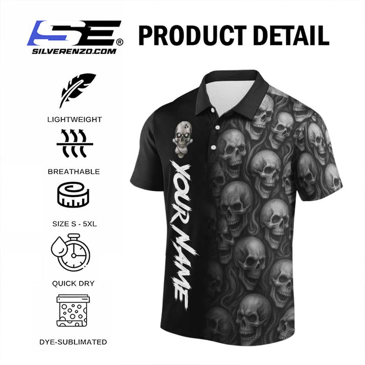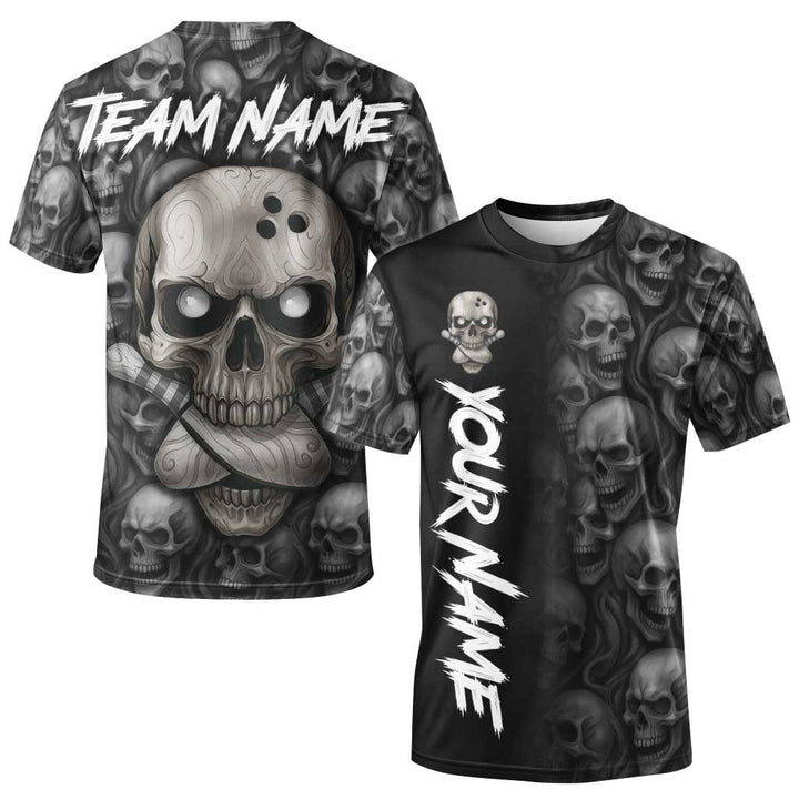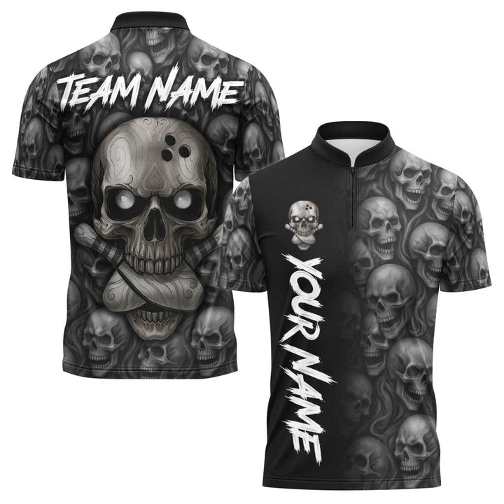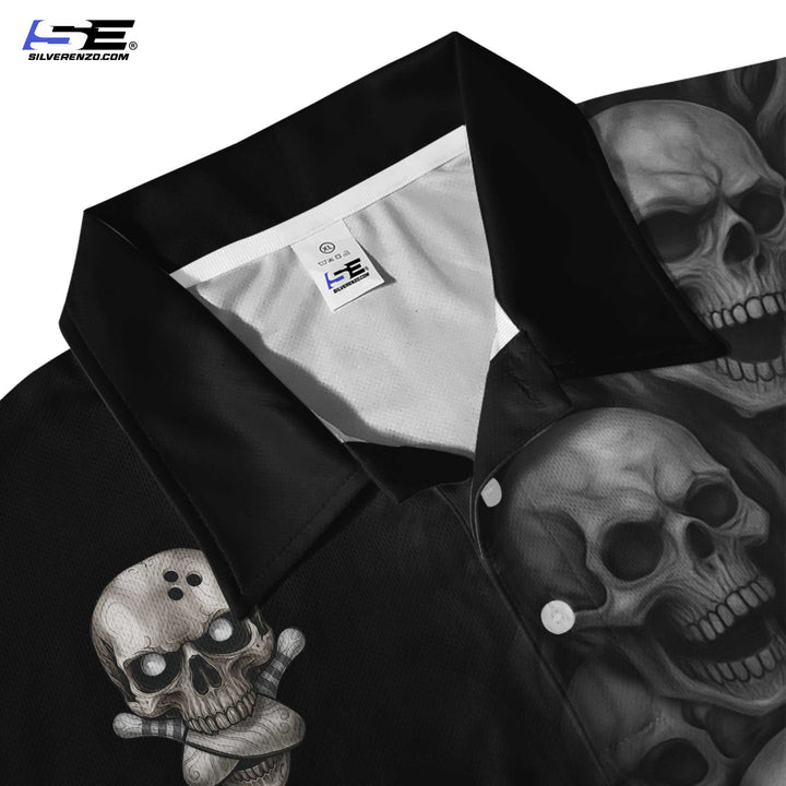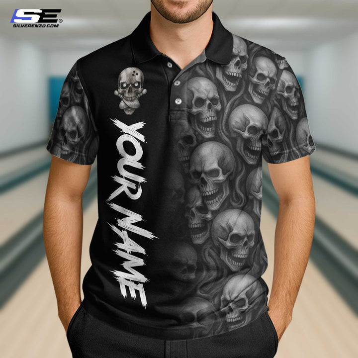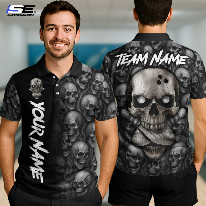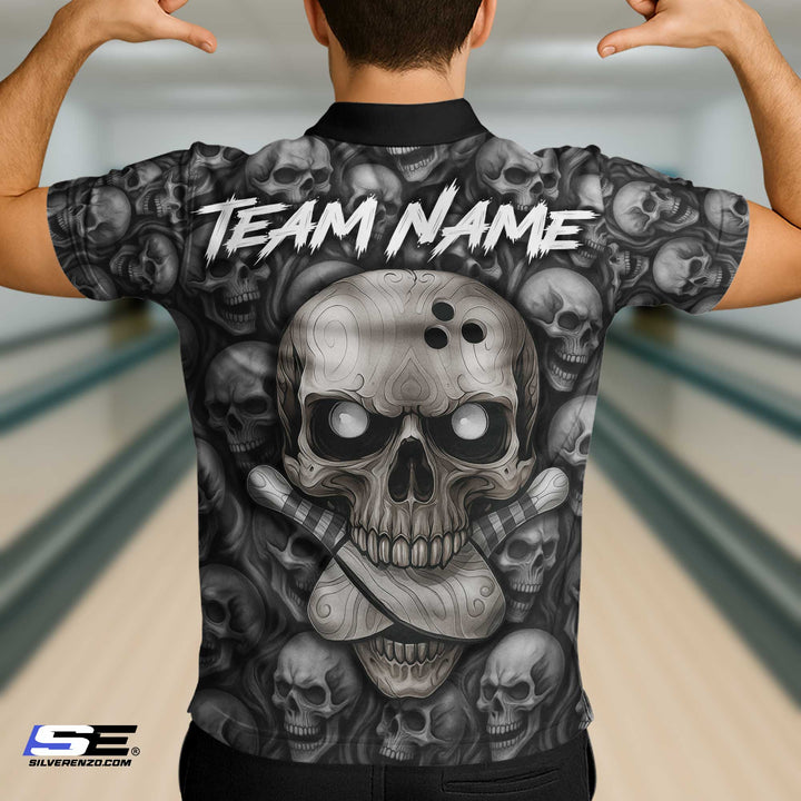 Personalized Bowling Skull Men Women Performance Polo Shirt Custom Name Bowling Team Jersey