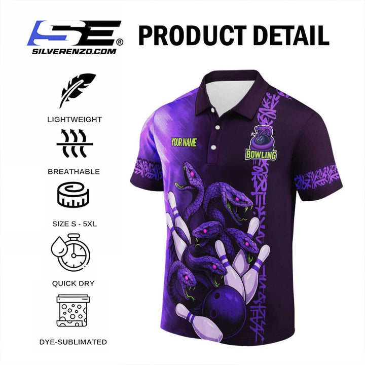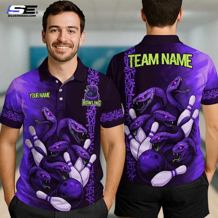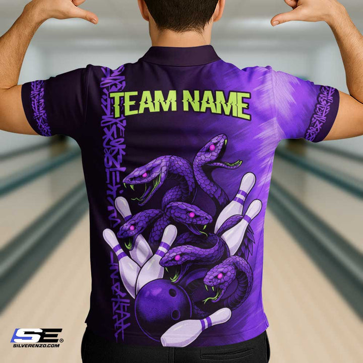 Personalized Bowling Snake Men Women Performance Polo Shirt Custom Name Bowling Team Jersey