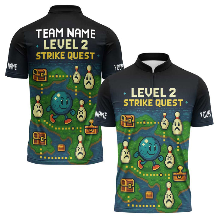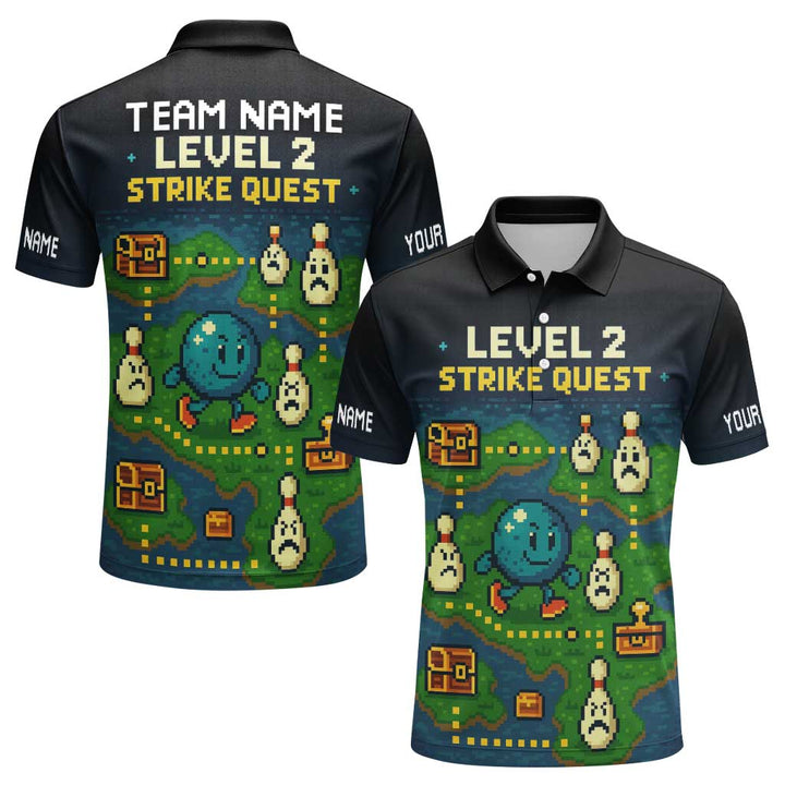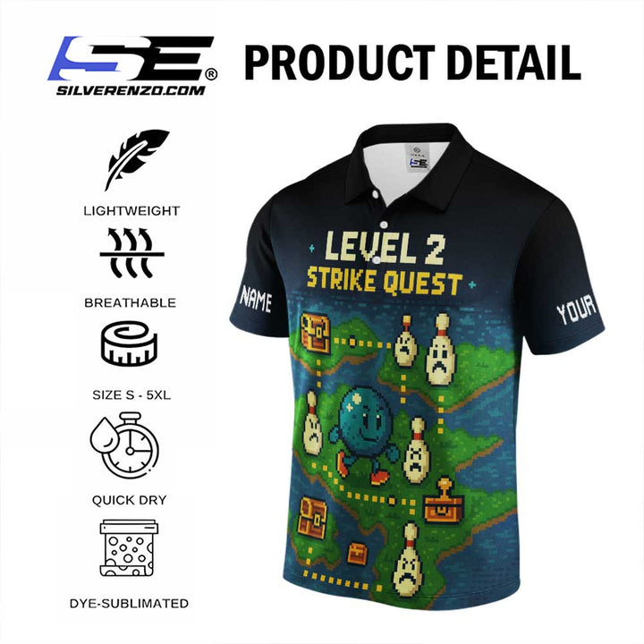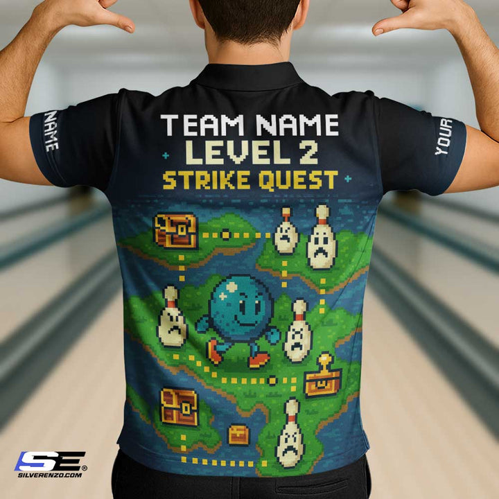 Personalized Bowling Strike Quest Men Women Performance Polo Shirt Custom Name Bowling Team Jersey