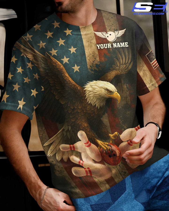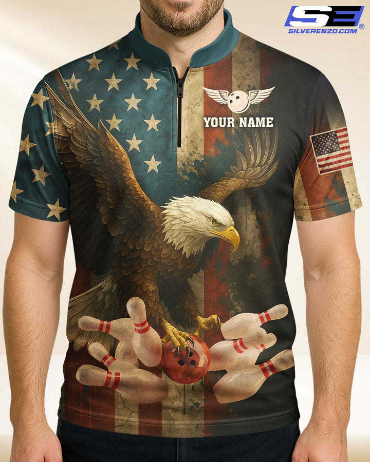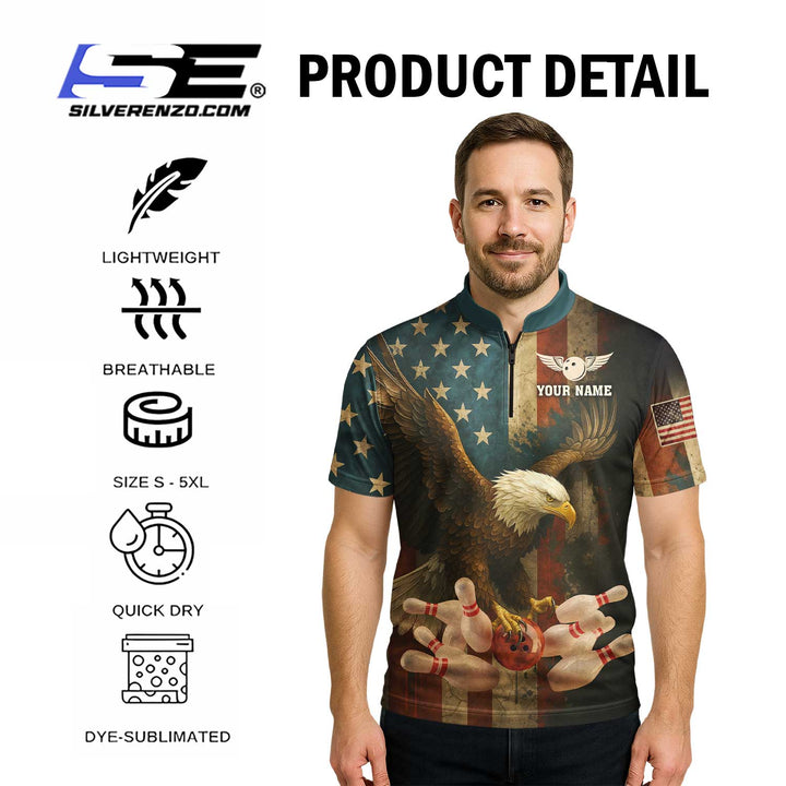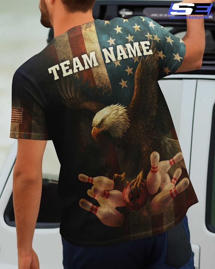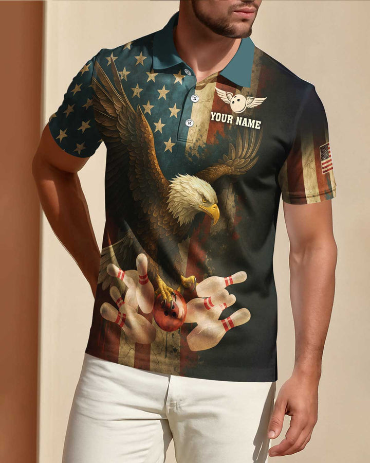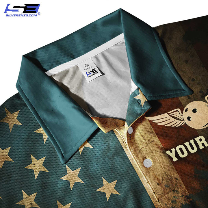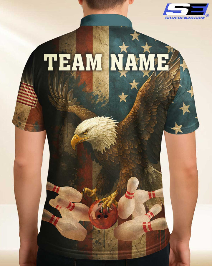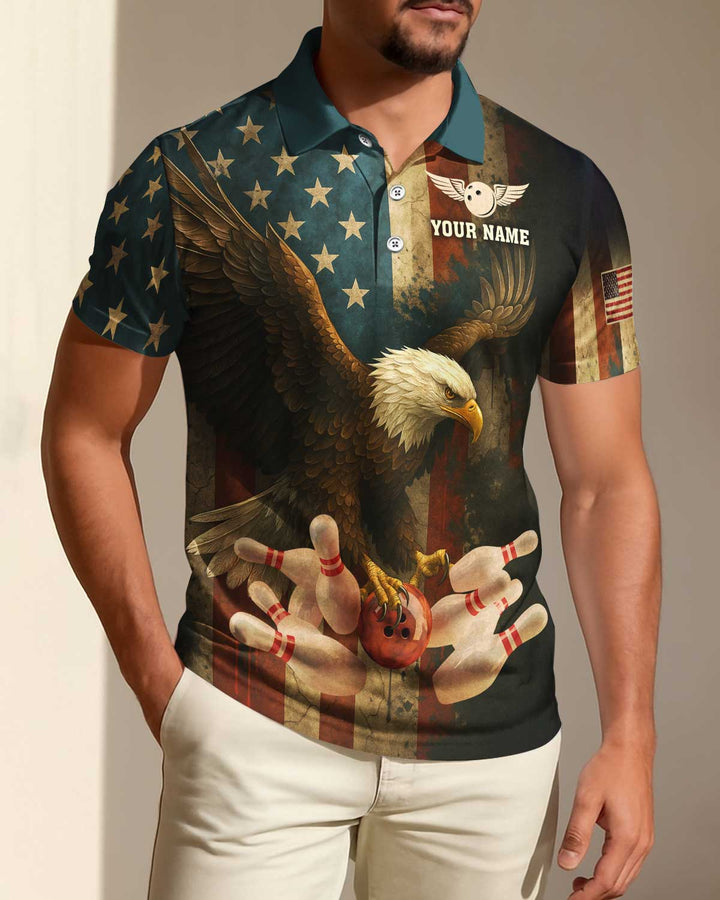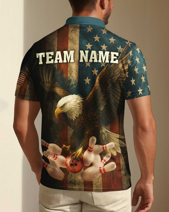 Personalized Bowling US Flag Eagle Patriotic Men Women Polo Shirt Custom Name Bowling Team Jersey