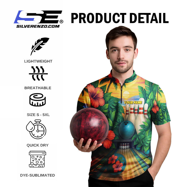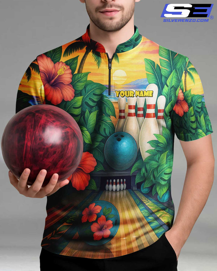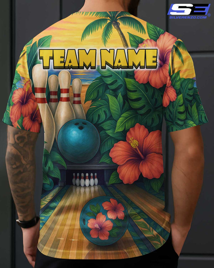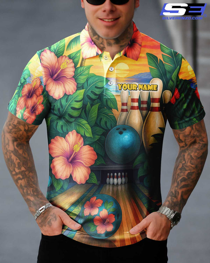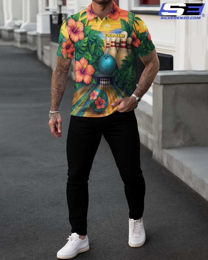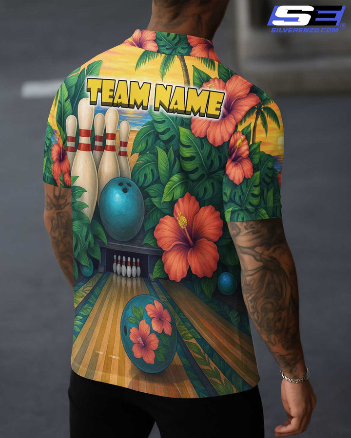 Personalized Bowling Tropical Vibe Men Women Polo Shirt Custom Name Bowling Team Jersey