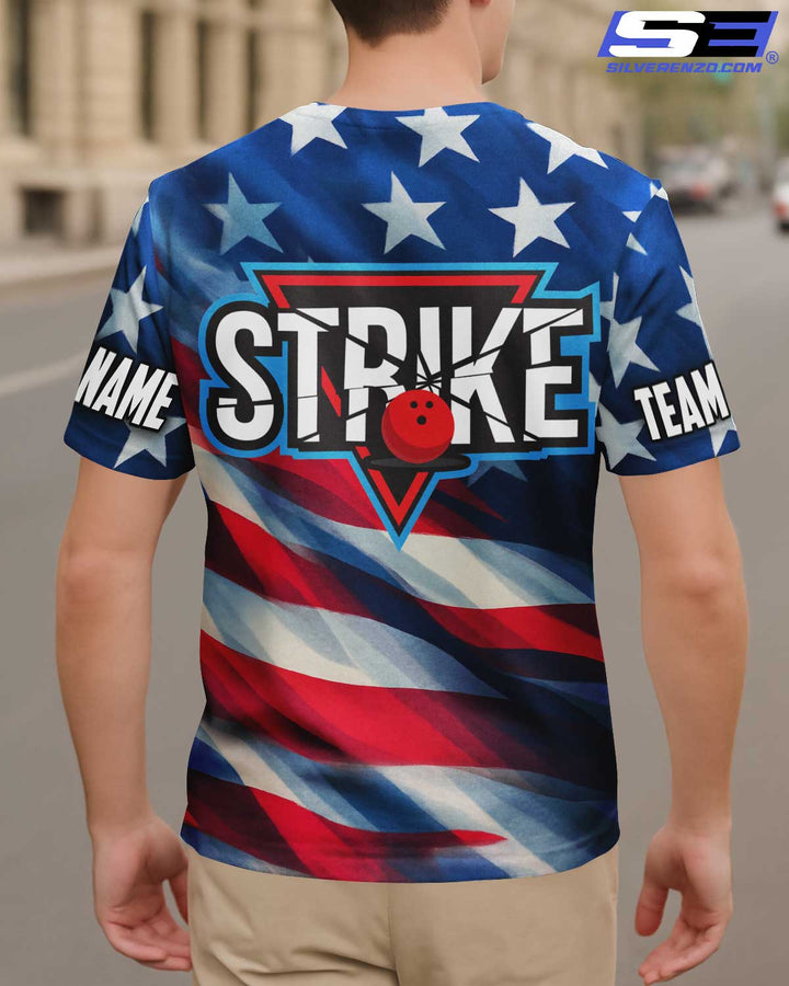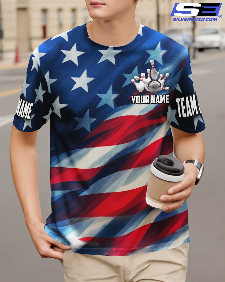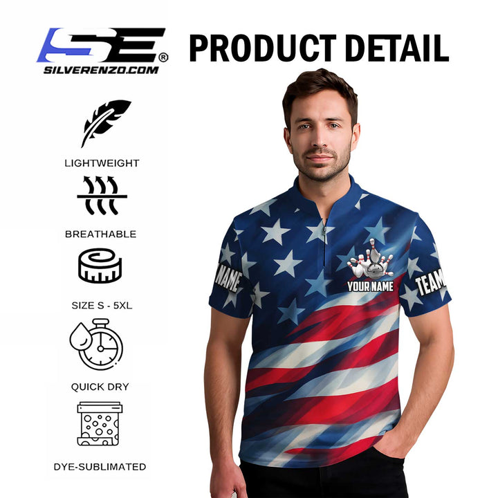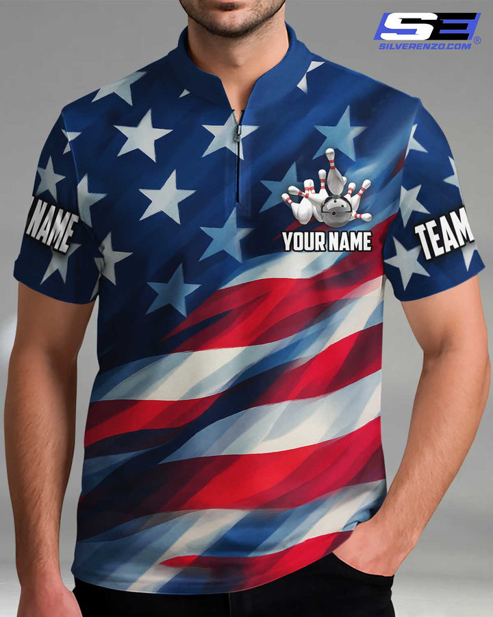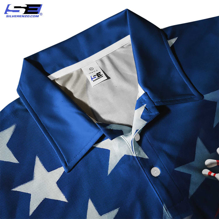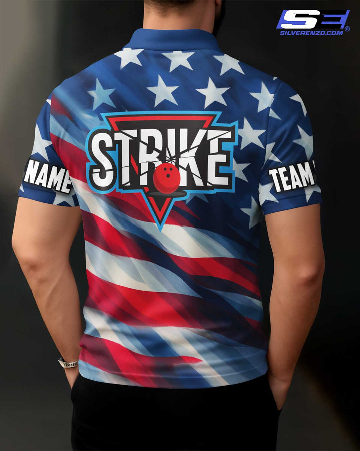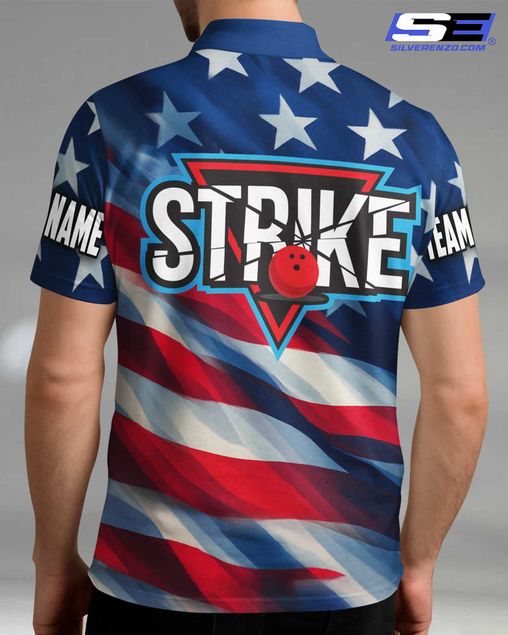 Personalized Bowling US Flag Men Women Polo Shirt Custom Name Bowling Team Jersey