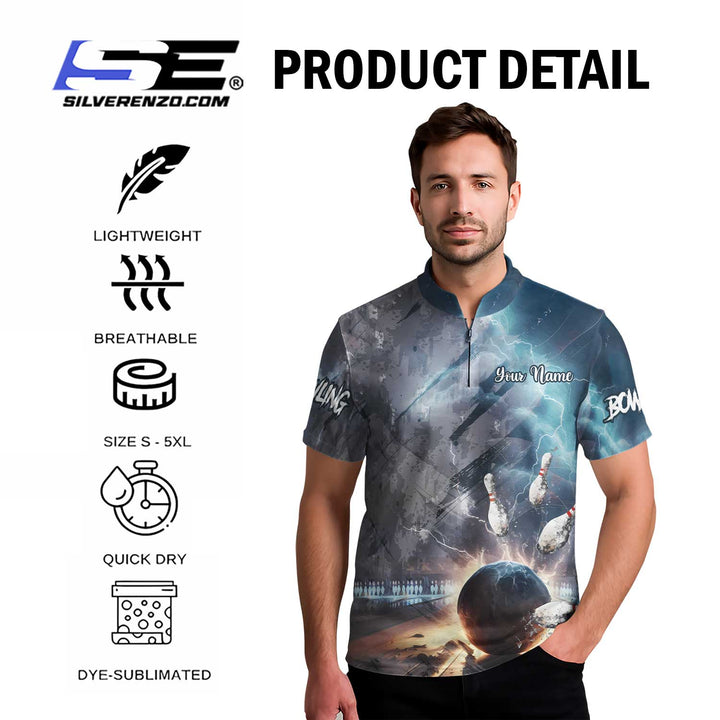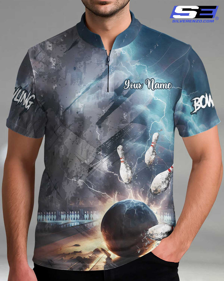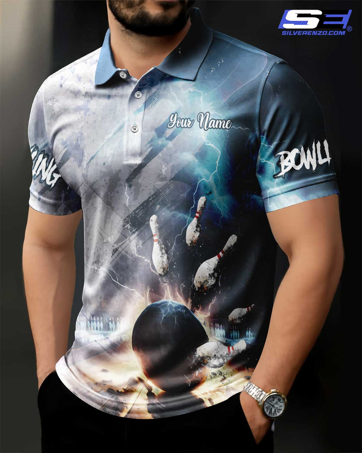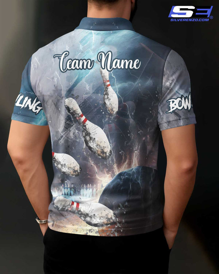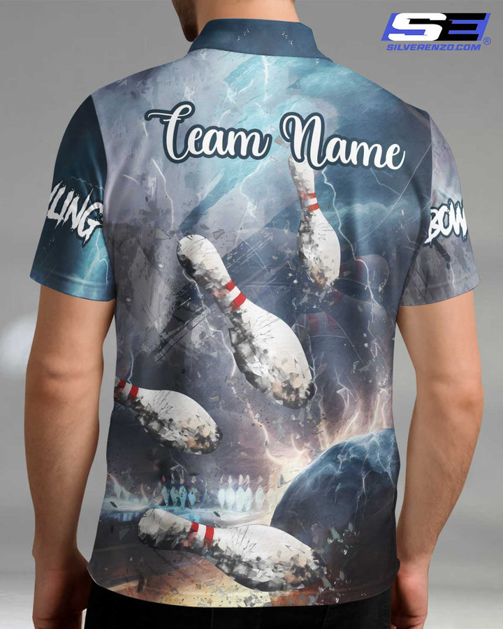 Personalized Bowling Cracked Pins Men Women Polo Shirt Custom Name Bowling Team Jersey