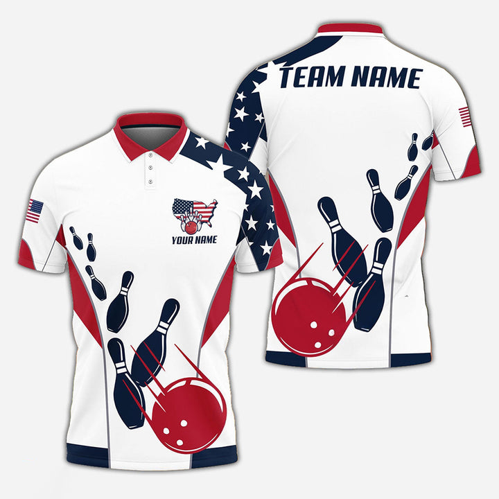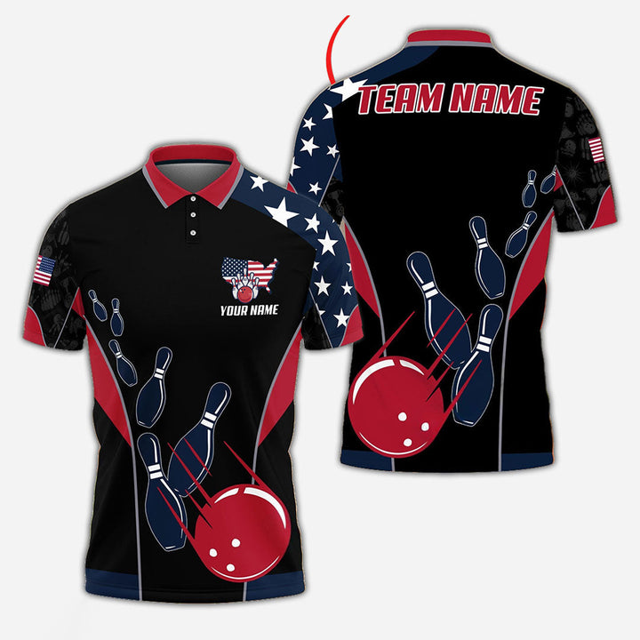 Personalized Bowling US Flag Men Women Polo Shirt Custom Name Bowling Team Jersey