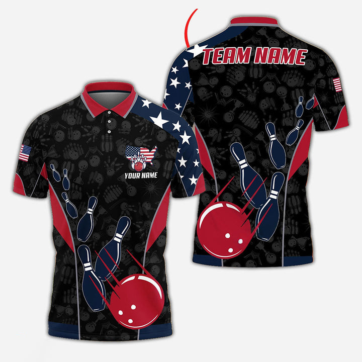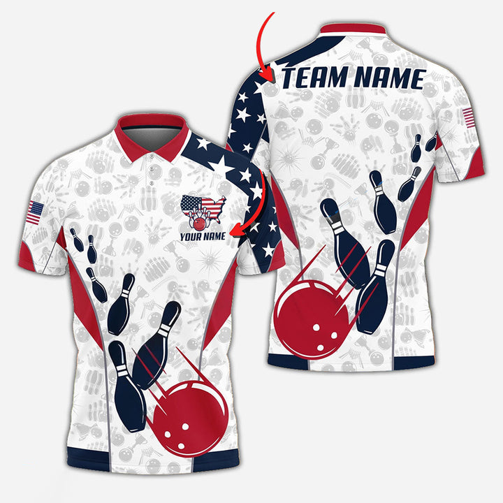 Personalized Bowling US Flag Men Women Polo Shirt Custom Name Bowling Team Jersey