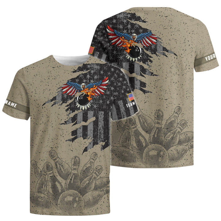 Personalized Bowling US Patriotic Eagle Men Women Polo Shirt Custom Name Bowling Team Jersey