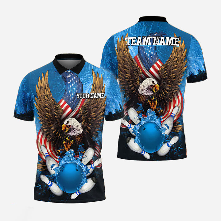 Personalized Bowling US Patriotic Eagle Men Women Polo Shirt Custom Name Bowling Team Jersey