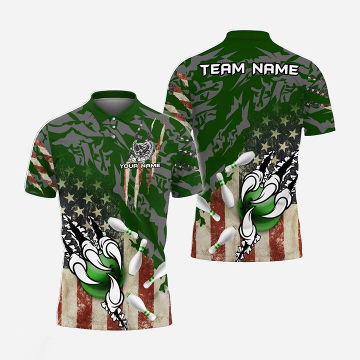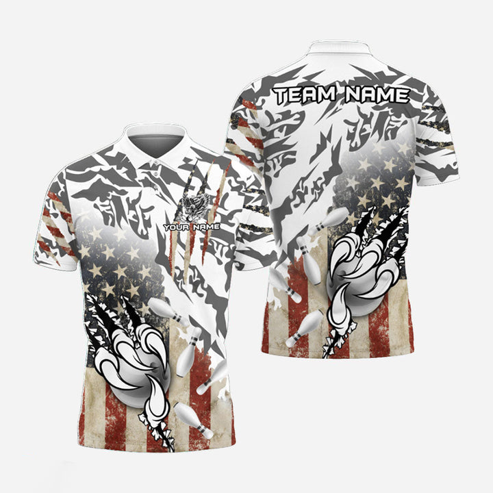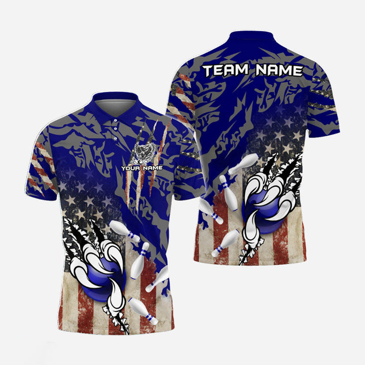 Personalized Bowling US Patriotic Men Women Polo Shirt Custom Name Bowling Team Jersey