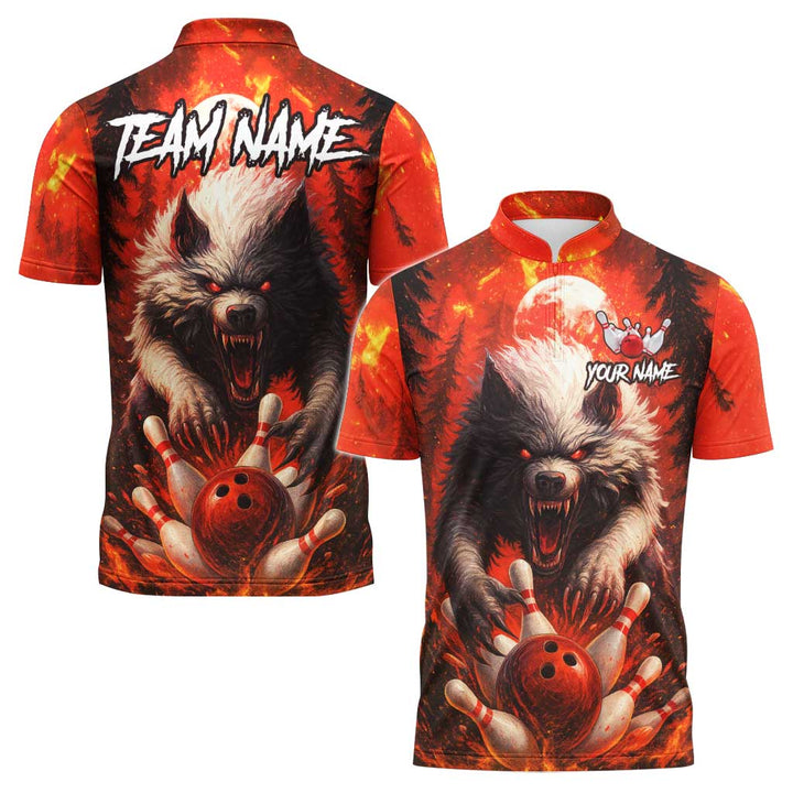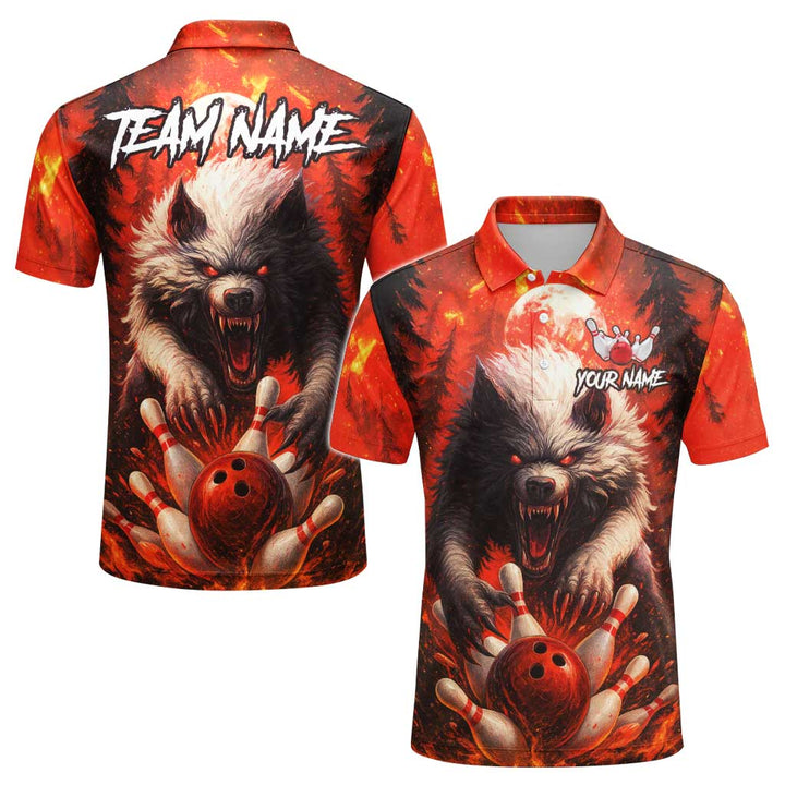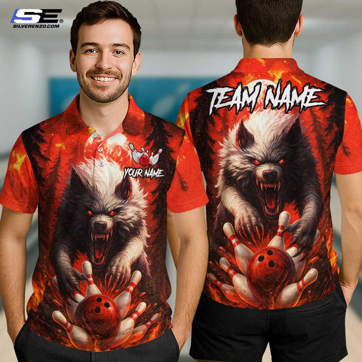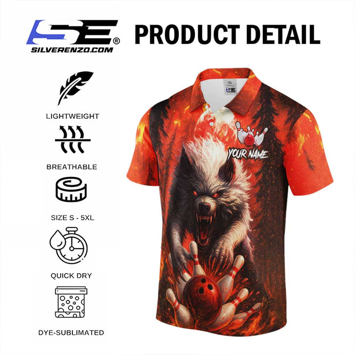 Personalized Bowling Wolf Men Women Performance Polo Shirt Custom Name Bowling Team Jersey