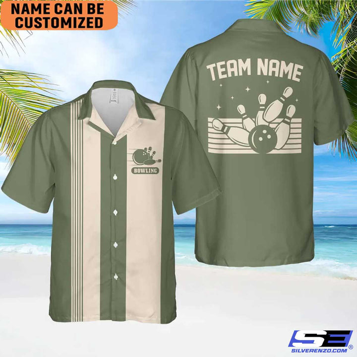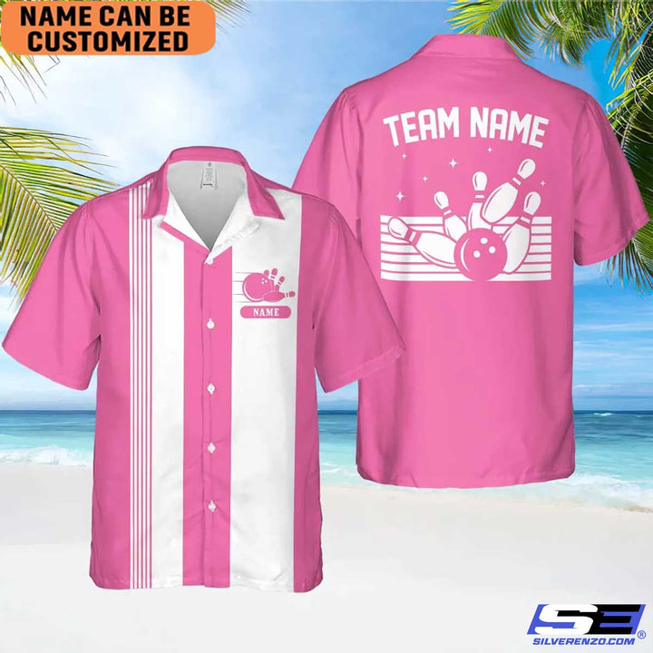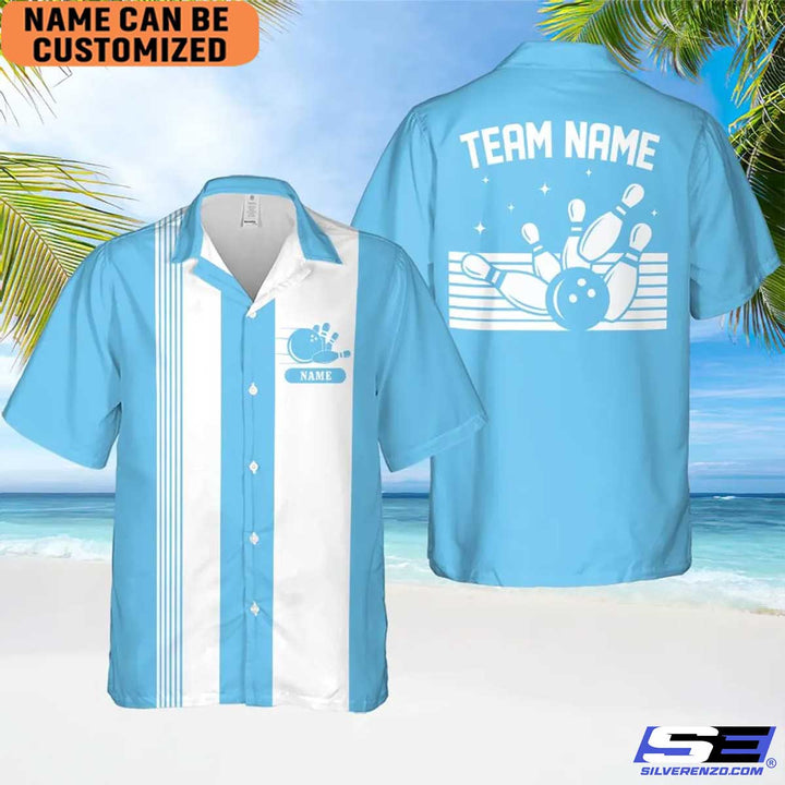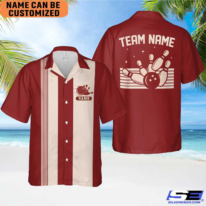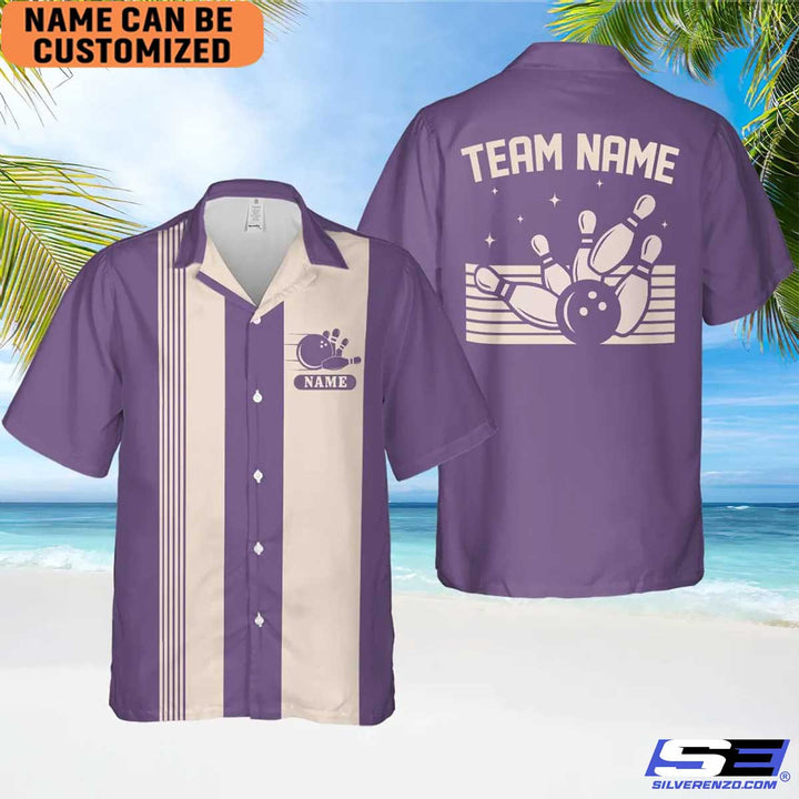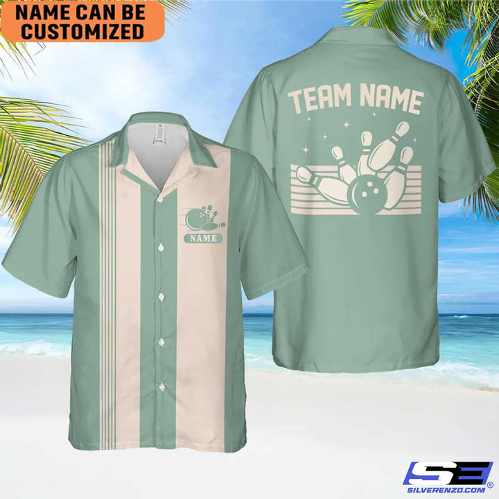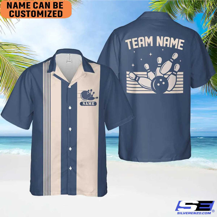 Personalized Retro Bowling Hawaiian Shirt, Custom Name Bowler Button Down Shirt, Matching Bowling Team Shirt, Bowling Lover Gift Shirt